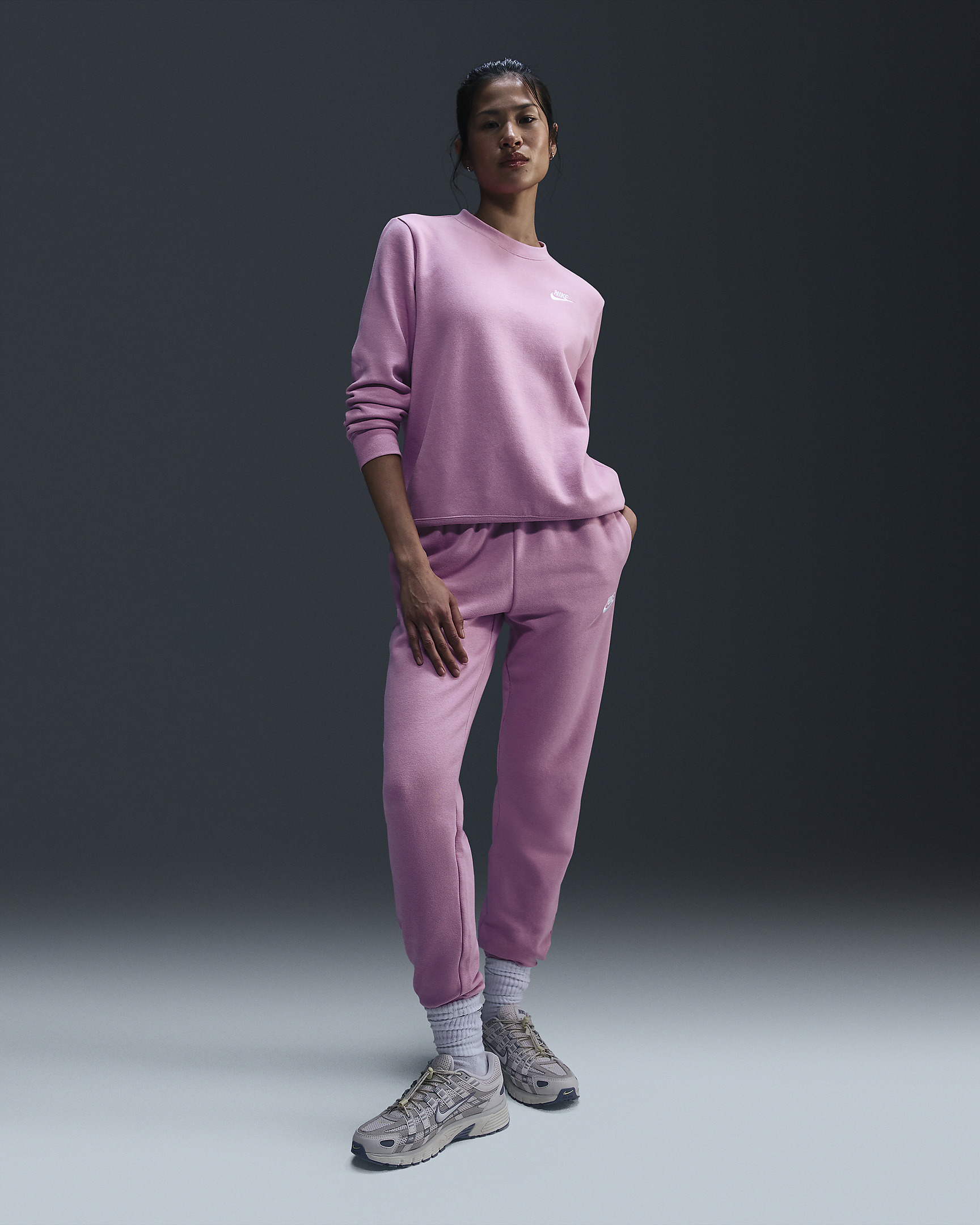 Club Fleece, universally loved for its coziness and consistency, is for everyone. These mid-rise Club Fleece pants have a soft, familiar feel that makes it easy to stay warm and comfortable. Benefits - Our best-selling fleece for a reason, Club Fleece has a cozy, familiar feel and consistent fit you can return to again and again. Brushed for added warmth and softness, it’s an ideal layer for colder temperatures. - Soft and stretchy, the ribbed cuffs help show off your shoes. - Pockets provide quick storage for keys, phone and cold hands. Product Details - 80% cotton/20% polyester - Flat drawcord and elastic waist - Embroidered Futura logo - Machine wash - Imported - Shown: Beyond Pink/White - Style: DQ5191-632 SIZE & FIT Model is wearing size S and is 5′10″178cm Standard fit: easy and traditional Fl length: hits below ankle