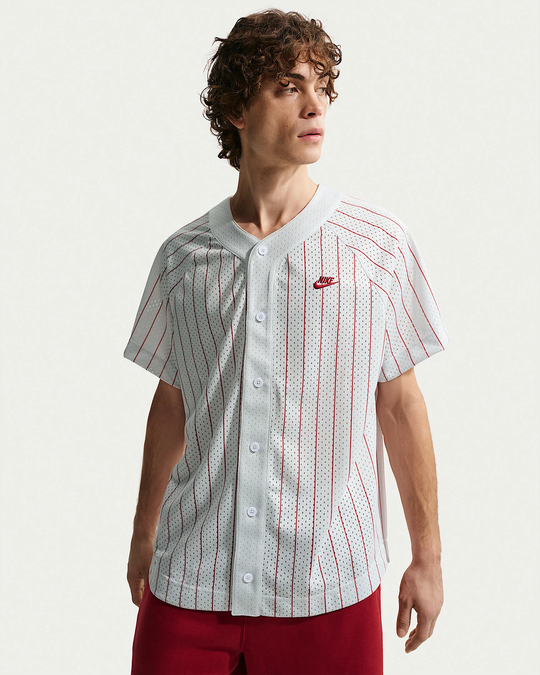 Sport-inspired style meets the comfort of Club. This jersey is made with sweat-wicking mesh fabric for laid-back, breathable comfort. Product Details - Embroidered logo - Body: 100% polyester. Lining: 100% polyester. - Machine wash - Imported - Shown: Photon Dust/Team Crimson - Style: II4428-025 SIZE & FIT Model is wearing size M and is 6′2″188cm Loose fit: roomy and relaxed