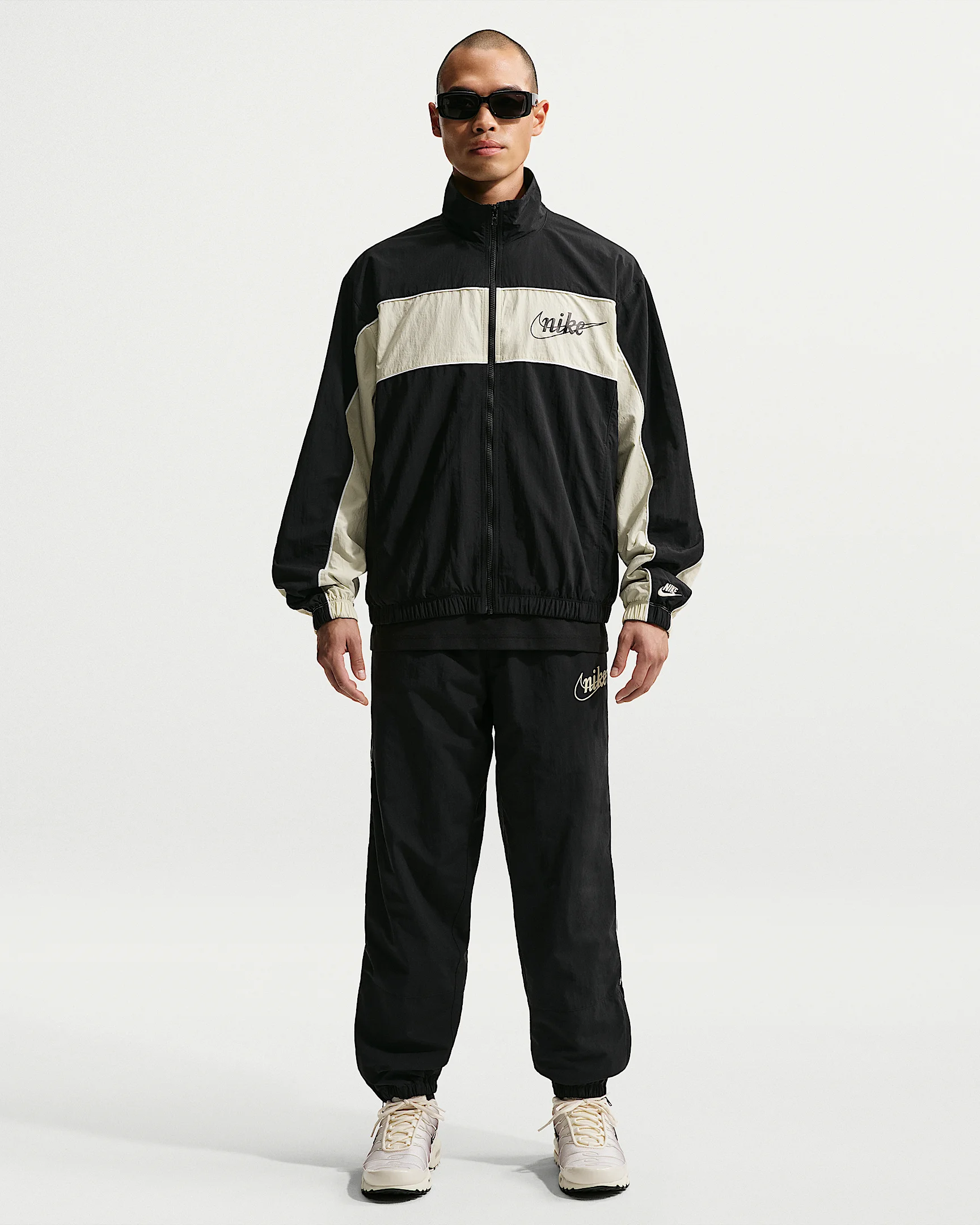 Casual style meets the comfort of Club. These pants pair a crinkly taffeta fabric with a mesh lining for a lightweight feel. They're roomy through the seat and thighs while zippers at the calves and cuffs let you switch up the fit around your shoes. Product Details - Hand pockets - Elastic waistband with drawcord - Body: 100% nylon. Mesh: 100% polyester. - Machine wash - Imported - Shown: Black/Light Khaki/Light Khaki - Style: IF0764-010 SIZE & FIT Model is wearing size M and is 5'11"180cm Loose fit: roomy and relaxed