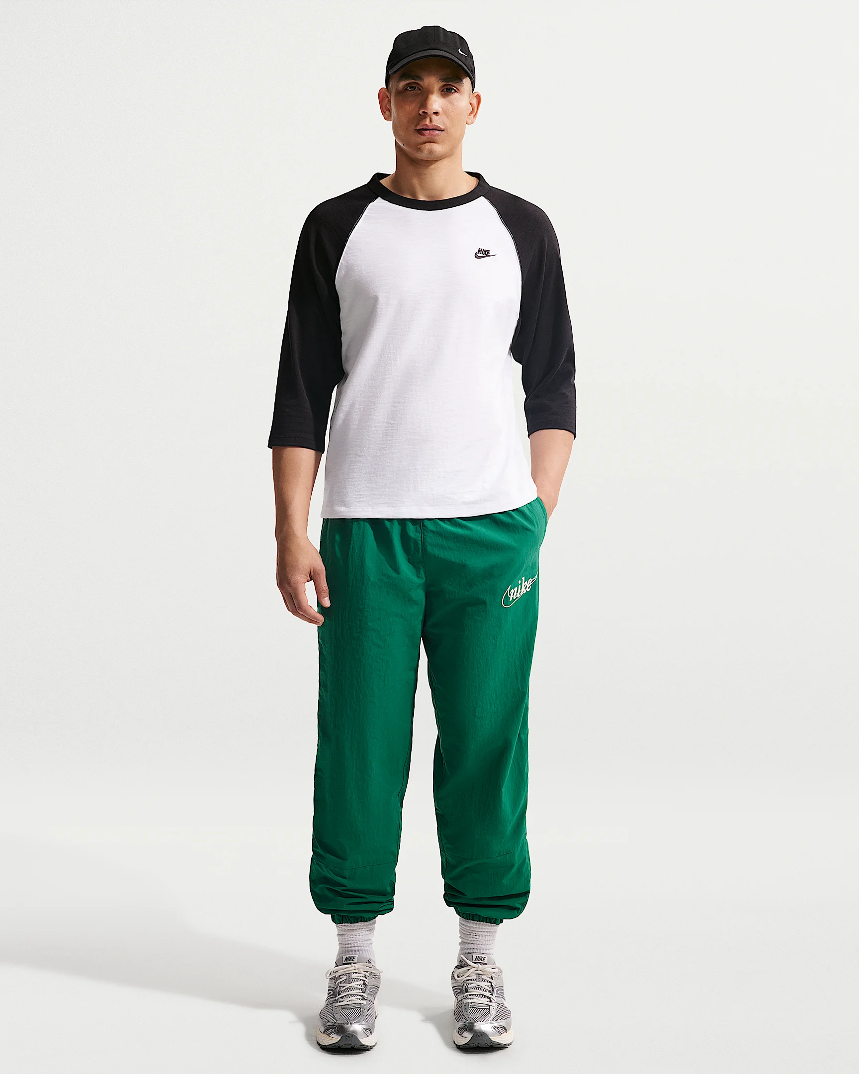 Casual style meets the comfort of Club. These pants pair a crinkly taffeta fabric with a mesh lining for a lightweight feel. They're roomy through the seat and thighs while zippers at the calves and cuffs let you switch up the fit around your shoes. Product Details - Hand pockets - Elastic waistband with drawcord - Body: 100% nylon. Mesh: 100% polyester. - Machine wash - Imported - Shown: Malachite/Black/Sail - Style: IF0764-365 SIZE & FIT Model is wearing size M and is 6′2″188cm Loose fit: roomy and relaxed