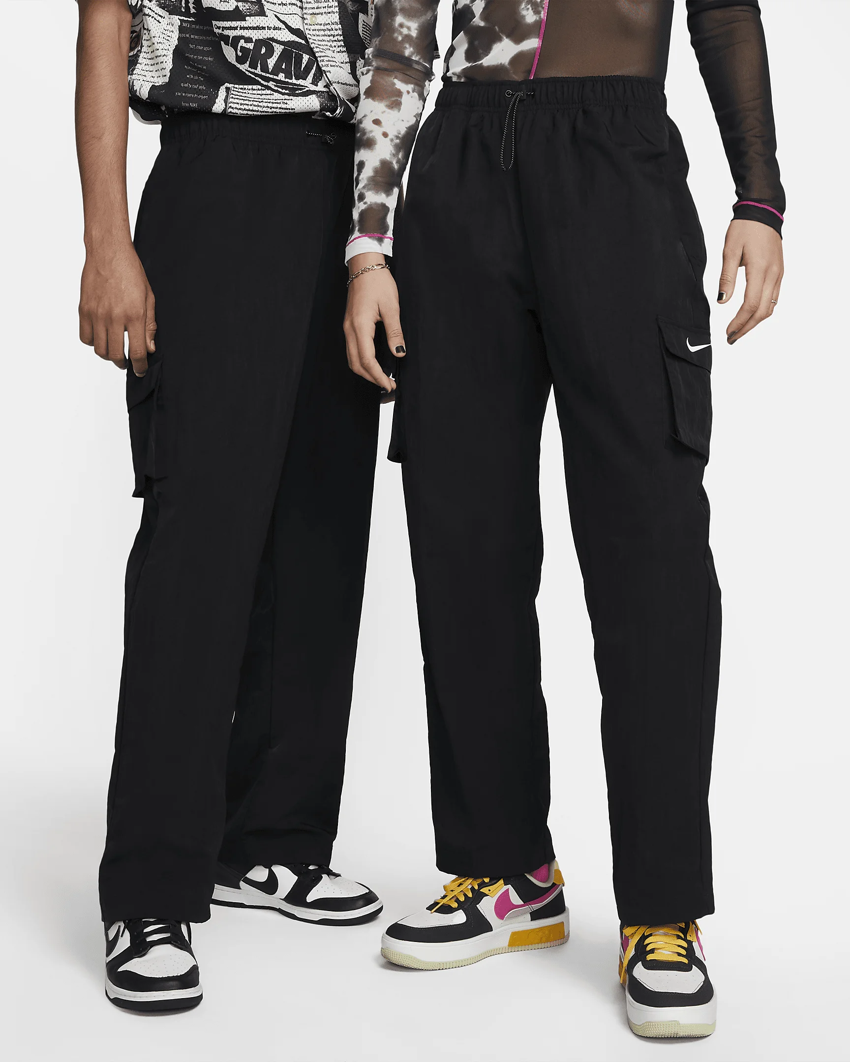These pants are relaxed through the leg for a carefree, comfortable feel. Unlined woven fabric feels soft and smooth against your skin while still looking crisp. Patch cargo pockets offer a utility look and quick storage. Benefits - Open hem provides a casual feel and lets you move freely. - This lightweight woven has a soft, semi-structured feel for a crisp look. - Bungee drawcord on elastic waistband lets you personalize the fit. - Side seam pockets provide additional small-item storage. Product Details - Standard fit for a relaxed, easy feel - 100% nylon - High rise - Side pockets - Machine wash - Imported - Shown: Black/White - Style: DO7209-010 SIZE & FIT Female model is wearing size S and is 5'11"179cm Male model is wearing size M and is 6'3"191cm <p><p> Standard fit: easy and traditional Fl length: hits below ankle Fits large; we recommend ordering a size down