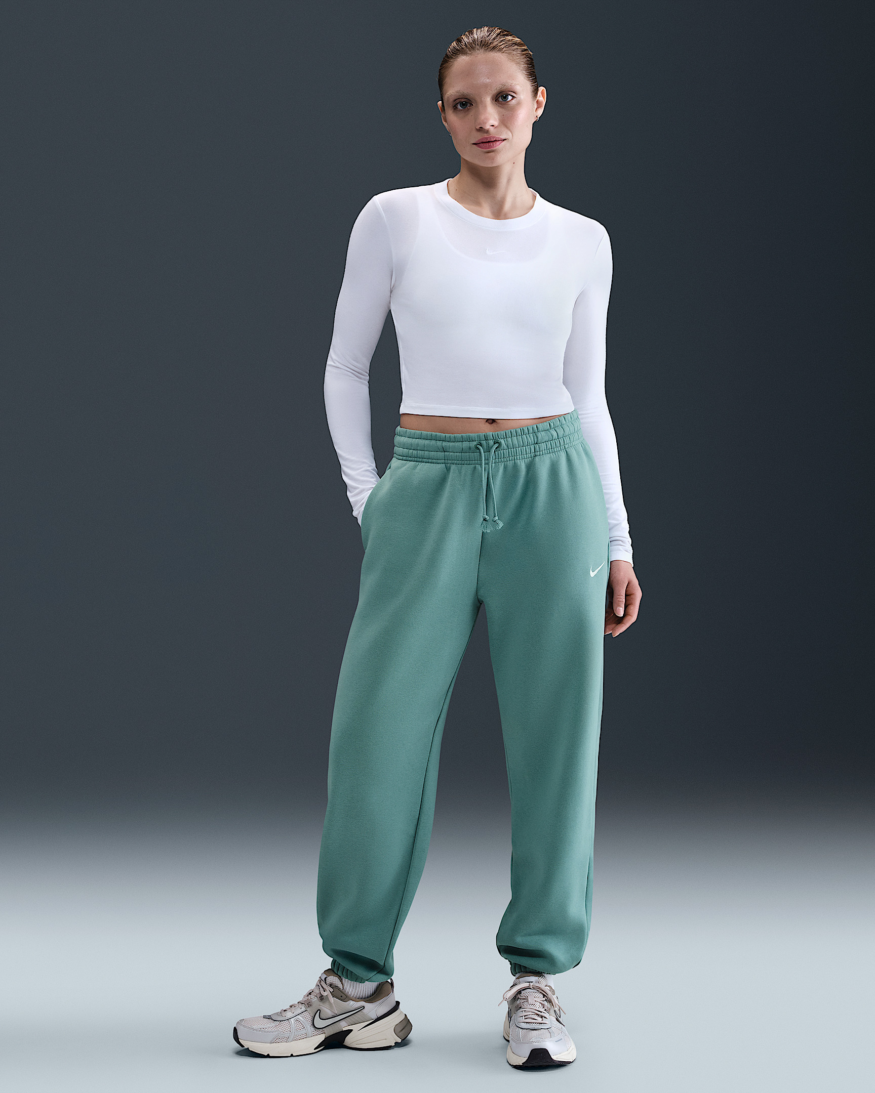 Grounded in style, comfort and versatility, meet our take on luxury loungewear. Whether you're running errands or rewatching your favorite show, these midweight fleece sweats feel extra soft on the inside to help keep you cozy. The oversized fit is intended to sit high on your hips for comfort and a stay-put feel. Benefits - Encased elastic waistband and drawstrings ensure a fit that feels just right. - Pockets provide quick storage for keys, phone and cold hands. Product Details - 80% cotton/20% polyester - Embroidered Swoosh logo on left leg - Machine wash - Imported - Shown: Cannon/Sail - Style: FZ5996-017 SIZE & FIT Model is wearing size S and is 5′10″178cm Oversized fit: exaggerated and spacious Fl length: hits below ankle
