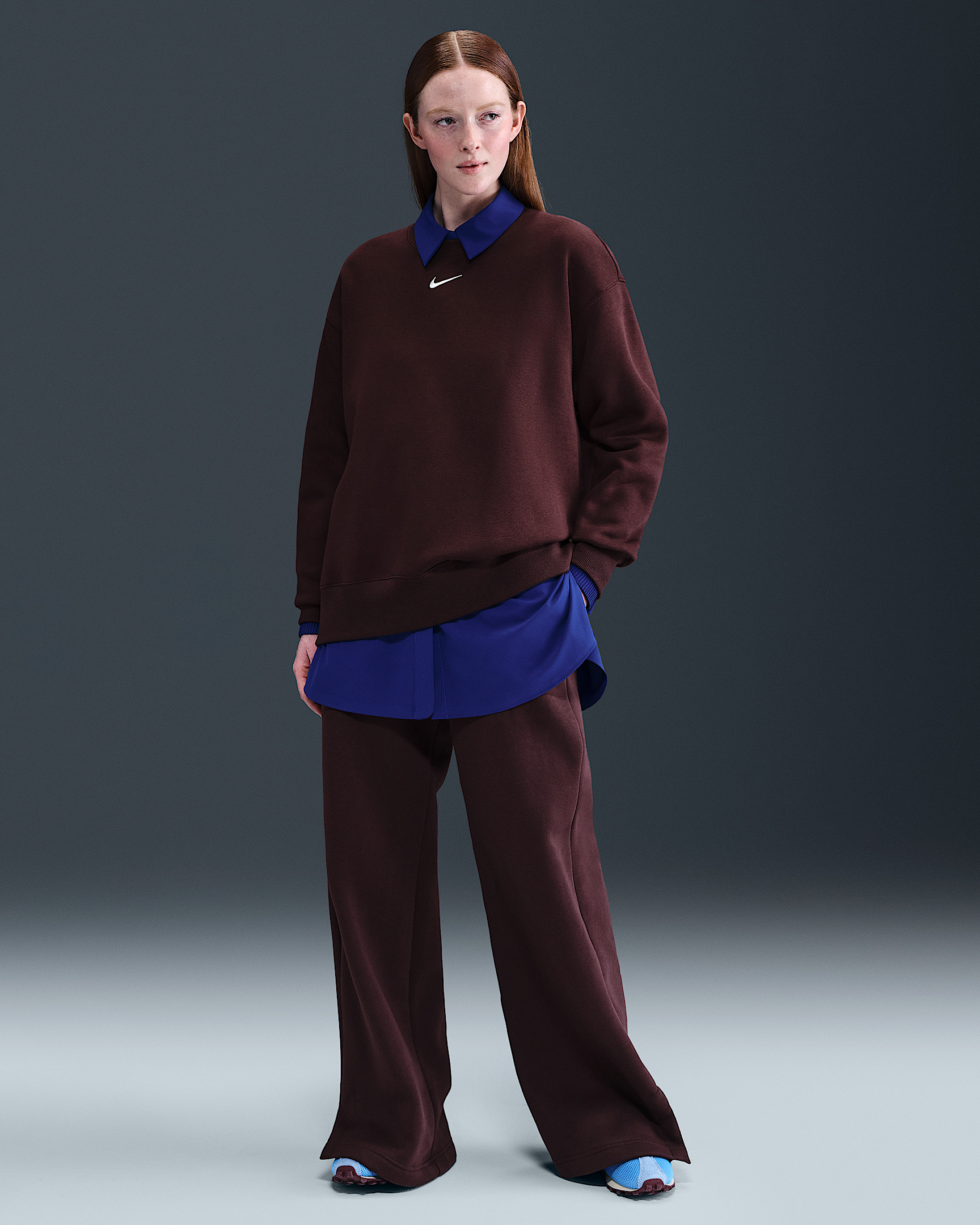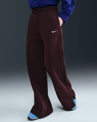 Made with midweight brushed fleece that feels extra soft on the inside and smooth on the outside, these wide-leg pants have an all-day cozy feel. Product Details - 80% cotton/20% polyester - Hand pockets - Side vents - Embroidered Swoosh logo on left thigh - Elastic waistband with drawcord - Machine wash - Imported - Shown: Burgundy Crush/Sail - Style: IH1011-652 SIZE & FIT Model is wearing size S and is 5′7″170cm Standard fit: easy and traditional Fl length: hits below ankle