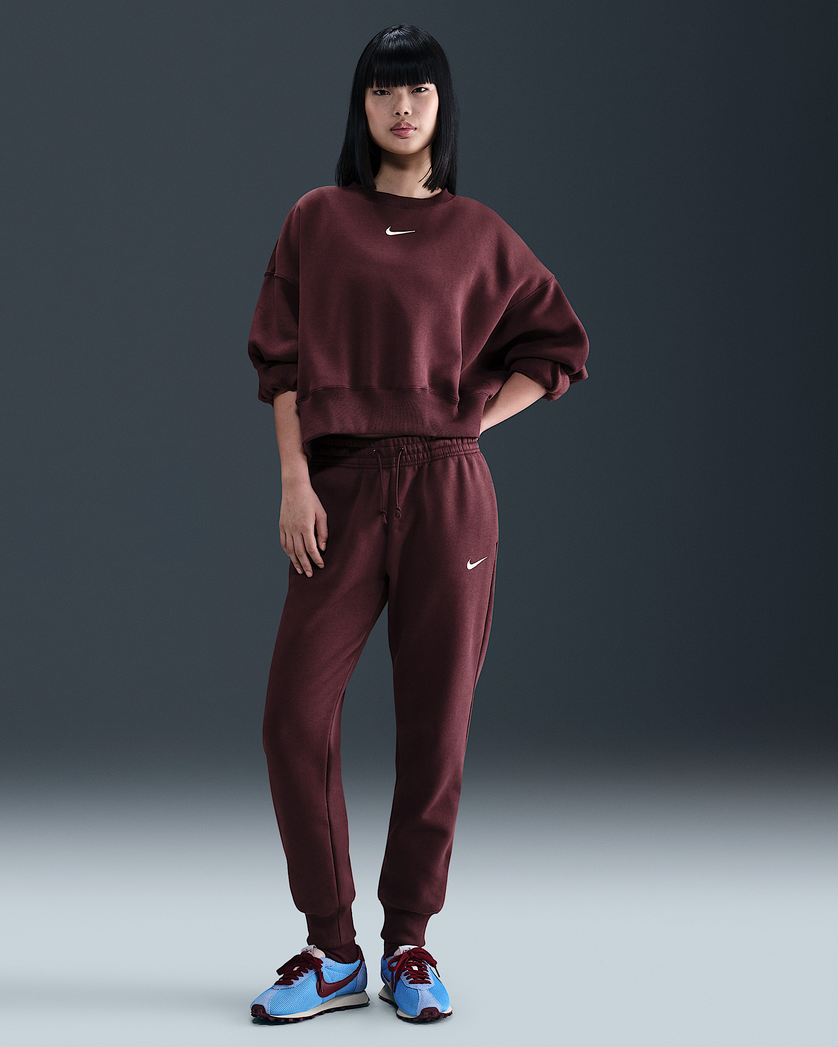 Rise up and transform your wardrobe with strong cozy vibes. Made with midweight brushed fleece that feels extra soft on the inside and smooth on the outside, these sweats help you stay cozy while offering a structured shape. A tapered fit finishes with a cinch at the ankles that helps you show off your favorite kicks. Benefits - Pockets provide quick storage for keys, phone and cold hands. - Tighten up the elastic waistband on the fly with the quick-tie drawcord. Product Details - 80% cotton/20% polyester - Embroidered Swoosh logo on left leg - Machine wash - Imported - Shown: Burgundy Crush/Sail - Style: FZ7626-652 SIZE & FIT Model is wearing size S and is 5′11″180cm Standard fit: easy and traditional Fl length: hits below ankle