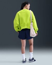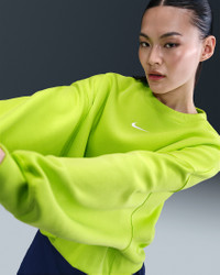 Grounded in style, comfort and versatility, meet our take on luxury loungewear. Our roomiest fit paired with exaggerated details (like the oversized pocket and taller ribbing) ensures this sweatshirt is anything but basic. All that's left to decide is whether to style it with the matching shorts or other pieces from your wardrobe. Benefits - Our midweight brushed fleece feels extra soft on the inside and smooth on the outside, helping you stay cozy while keeping its structured shape. - Dropped shoulder seams and roomy sleeves provide a relaxed, spacious feel. Product Details - Elongated ribbing - Embroidered Swoosh logo - 80% cotton/20% polyester - Machine wash - Imported - Shown: Cyber/Sail - Style: DQ5761-389 SIZE & FIT Model is wearing size S and is 5′7″170cm Oversized fit: exaggerated and spacious Fits large; we recommend ordering a size down