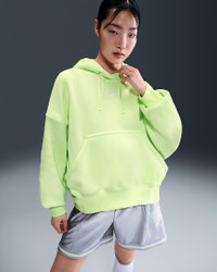 Grounded in style, comfort and versatility, meet our take on luxury loungewear. Our roomiest fit paired with exaggerated details (like the oversized pocket and taller ribbing) ensures this hoodie is anything but basic. All that's left to decide is whether to style it with the matching sweats or other pieces from your wardrobe. Benefits - Our midweight brushed fleece feels extra soft on the inside and smooth on the outside, helping you stay cozy while keeping its structured shape. - Dropped shoulder seams and roomy sleeves provide a relaxed, spacious feel. Product Details - Elongated ribbing - Drawcord hood - Front pocket - Body: 80% Cotton/20% Polyester. Hood lining: 100% Cotton. - Machine wash - Imported - Shown: Light Liquid Lime/Sail - Style: DQ5858-360 SIZE & FIT Model is wearing size S and is 5′9″175cm Oversized fit: exaggerated and spacious Fits large; we recommend ordering a size down