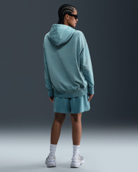 With unbrushed French terry and a vintage wash, this oversized sweatshirt has a breathable, broken-in feel. Product Details - Body/Hood lining: 88% cotton/12% polyester. Rib: 97% cotton/3% spandex. - Extra-wide ribbing - Elongated drawcords - Printed graphics with stitched outline - Embroidered Swoosh logo on left wrist - Embroidered drawcord opening - Machine wash - Imported - Shown: Smokey Blue - Style: HJ1235-006 SIZE & FIT Model is wearing size S and is 5′8″173cm Oversized fit: exaggerated and spacious