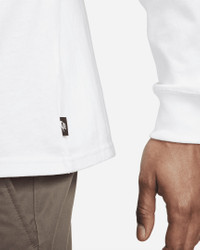 The Nike Sportswear Long-Sleeve T-Shirt has a loose fit for a carefree, comfortable look. Its heavyweight organic cotton fabric feels thick and soft. A subtle Futura logo at the center front offers a signature Nike look while a set-on collar ensures a clean, comfortable fit. This product is made with at least 75% organic cotton fibers. Benefits - The loose-fitting design features dropped shoulders and room through the chest for a relaxed look and feel. - This heavyweight cotton jersey has a stiff drape and dry hand for a crisp, thick feel. Product Details - Loose fit for a roomy feel - Embroidered Futura logo - 100% cotton - Machine wash - Imported - Woven label - Shown: White/White - Style: DO7390-100 SIZE & FIT Model is wearing size M and is 6'2"188cm Big & Tall model is wearing size 2XL and is 6'3"191cm Loose fit: roomy and relaxed Fits large; we recommend ordering a size down