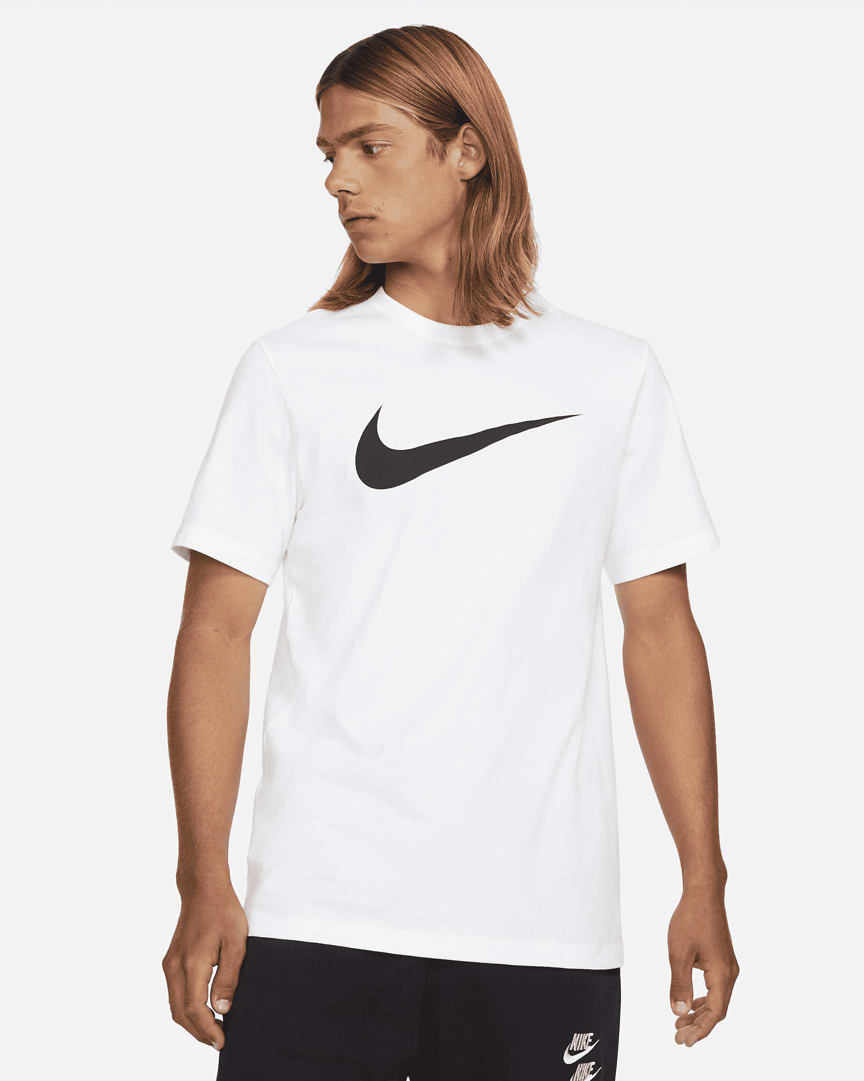 Big and bold, the Nike Sportswear T-Shirt offers soft cotton construction and a prominent graphic at the chest. Benefits - This lightweight jersey fabric has a soft feel perfect for everyday wear. - Printed details have a soft, smooth feel. Product Details - Standard fit for a relaxed, easy feel - 50-100% cotton/0-50% polyester - Material percentages may vary. Check label for actual content. - Machine wash - Imported - Shown: White/Black - Style: DC5094-100 SIZE & FIT Standard fit: easy and traditional