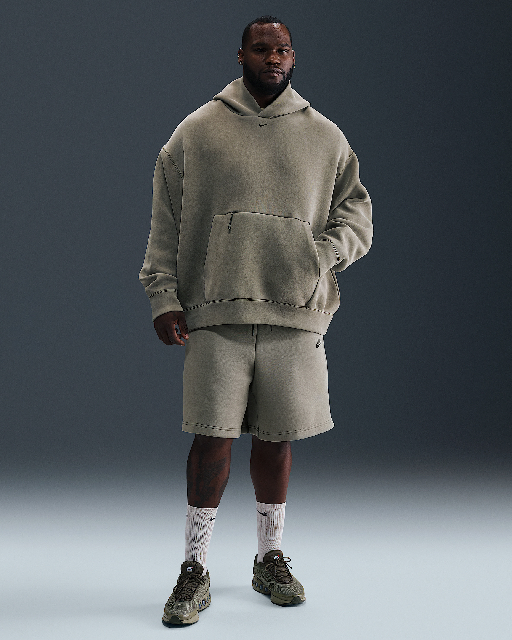 Pull on these Tech Fleece shorts for laid-back comfort that lasts all day long. Our premium, smooth-on-both-sides fleece feels warmer and softer than ever, while keeping the same lightweight build you love. With a relaxed fit that hits just above the knee, these comfy shorts feature signature Tech Fleece details to keep your look polished. Pair them up with a tee or a Tech Fleece hoodie for a uniform finish. Benefits - Designed to feel relaxed through the seat and thighs for an athletic fit. - Signature taped pocket surround brings that Tech Fleece DNA to any outfit. Product Details - Soft elastic waistband - External drawcord - Hand pockets - Body: 53% cotton/47% polyester. Pocket Bag Knuckle Side: 100% cotton. - Machine wash - Imported - Shown: Light Army/Black - Style: FB8171-320 SIZE & FIT Big & Tall model is wearing size 3XL and is 6'3"189cm Loose fit: roomy and relaxed If you typically wear men's styles, please select your usual size. If you typically wear women's styles, please size down.