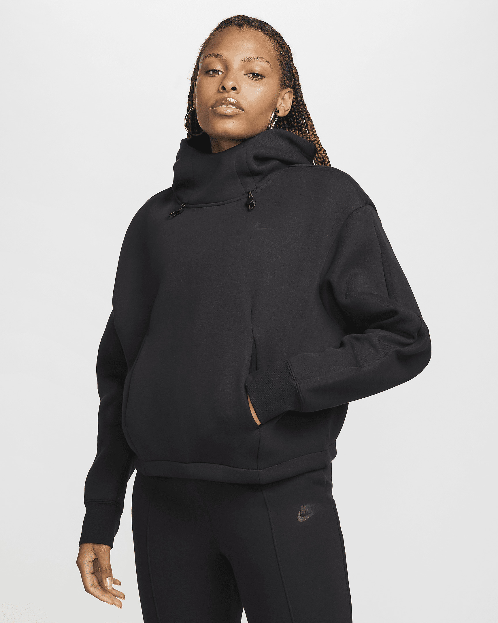 Setting the bar for premium warmth and polished comfort since 2013, Tech Fleece is entering a new era. Slightly cropped, this spacious hoodie has an easygoing—but elevated—feel. Our premium, lightweight fleece–smooth both inside and out–gives you plenty of warmth without adding bulk. Complete the look with some matching Tech Fleece bottoms or your favorite leggings. Benefits - Darts and extended neck coverage add structure and dimension to your look. - Kangaroo pocket gives you somewhere to put your hands when they get chilly. Product Details - 53% cotton/47% polyester. - Printed Futura logo on left chest - Hood with bungees - Machine wash - Imported - Shown: Black/Black - Style: FV6322-010 SIZE & FIT Model is wearing size S and is 5′10″178cm Oversized fit: exaggerated and spacious