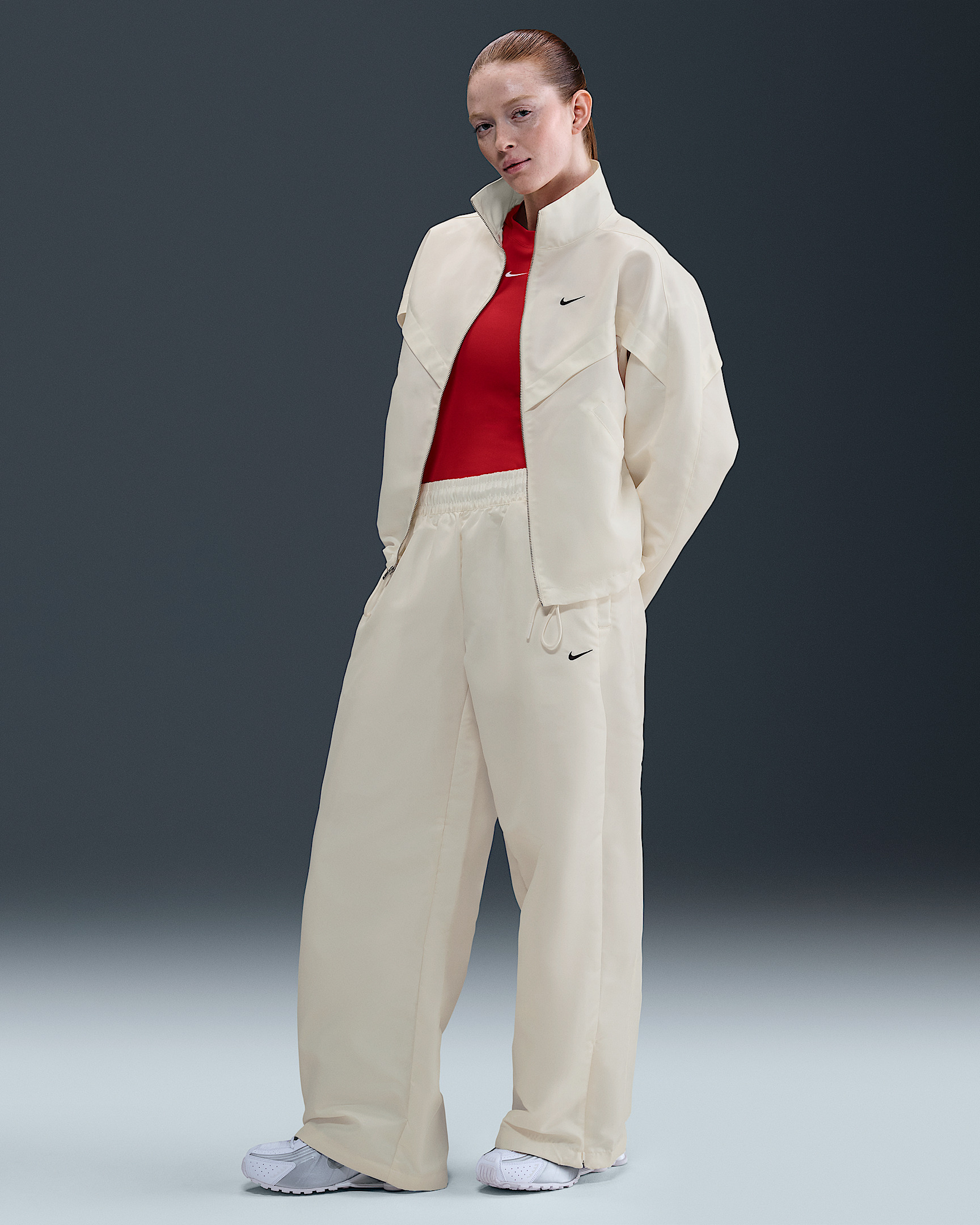 Mid-rise and oversized, these pants are made from nylon for that extra shine and texture. Invisible zippers at the hem let you switch up the silhouette. Product Details - 100% Polyester - Encased elastic waistband - Pockets - Back welt pocket - Embroidered Swoosh logo - Machine wash - Imported - Shown: Sail/Black - Style: HV2475-133 SIZE & FIT Oversized fit: exaggerated and spacious Fl length: hits below ankle