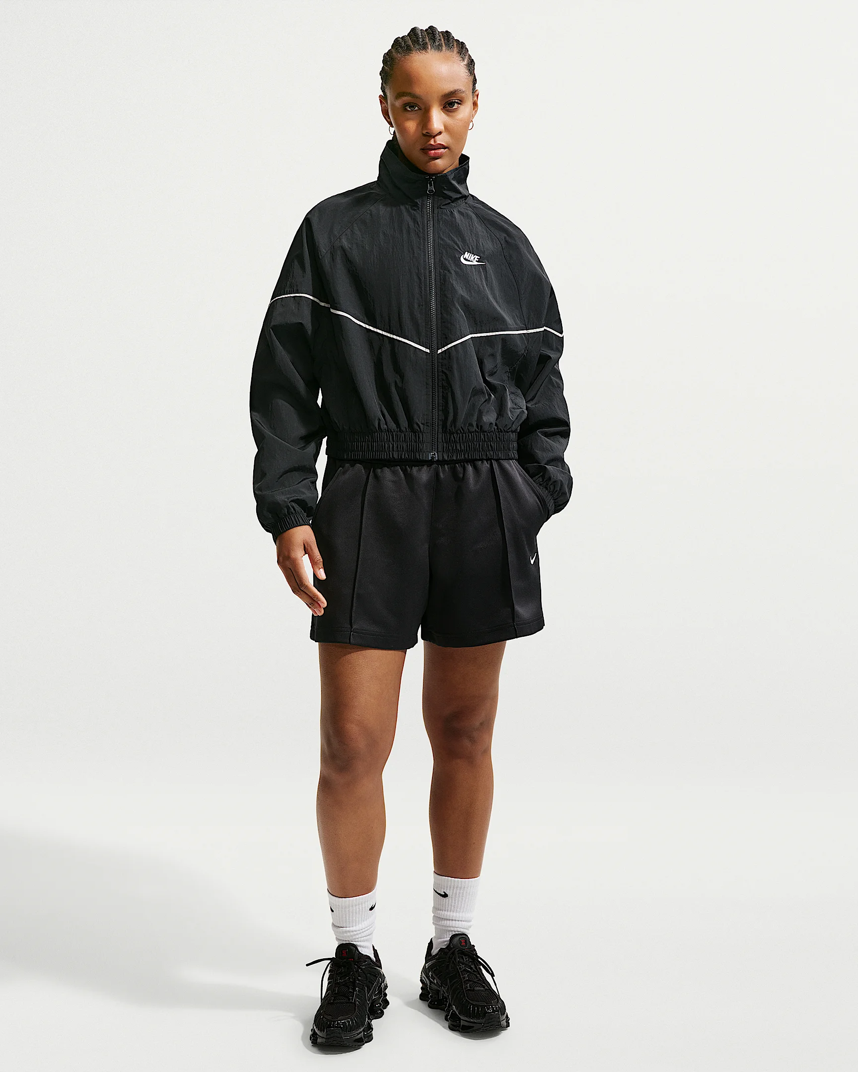 Classic sport style to run your everyday. These midweight knit shorts pair a hint of vintage flavor with casual comfort. Product Details - Embroidered Swoosh logo - Piping details - Midthigh length - Hand pockets - Elastic waistband with drawcord - Body: 100% polyester. Pocket bags 100% cotton. - Machine wash - Imported - Shown: Black/Black/Sail - Style: IF0647-010 SIZE & FIT Model is wearing size S and is 5′11″180cm Standard fit: easy and traditional