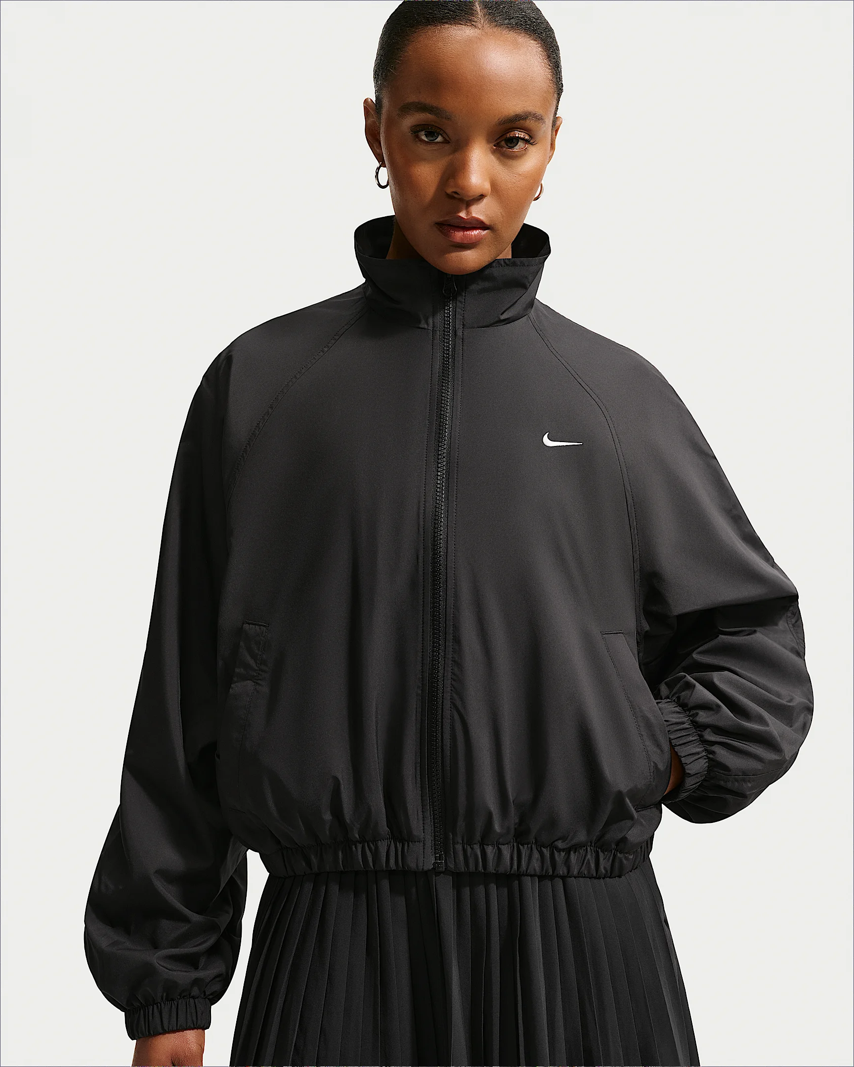 This lightweight taffeta jacket has UV protection to help provide coverage from the rays. Its extra roomy fit is designed to hit at your hips for a boxy look. Raglan sleeves with articulation ground it in sport-inspired style. Product Details - Embroidered logo - Hand pockets - Elastic hem and cuffs - Body: 100% polyester/Lining: 100% polyester. - Machine wash - Imported - This product provides UVA and UVB protection from the sun only in the areas covered by the garment. To protect exposed areas, the use of good quality sunscreen is recommended. - Shown: Black/Sail - Style: IO1473-010 SIZE & FIT Oversized fit: exaggerated and spacious