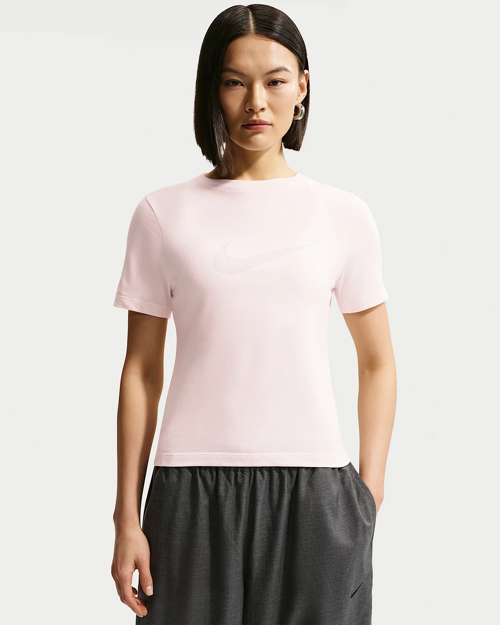 Burn through your day in comfort. This tee has a body-skimming fit for a clean look. It's made with a jersey knit that has a slightly sueded feel. Product Details - Ribbed collar - 57% cotton/43% polyester - Machine wash - Imported - Shown: Chalk/Chalk - Style: IO1516-103 SIZE & FIT Model is wearing size S and is 5′9″175cm Sm fit: sleek and tailored