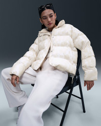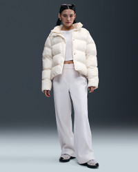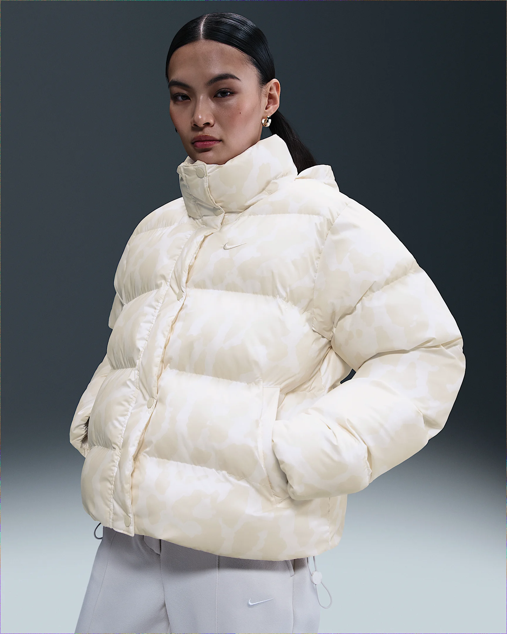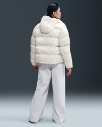 Bundle up in this roomy, hip-length puffer. With a loose collar and Therma-FIT technology, this jacket is designed to keep you cozy even on the coldest days. And to help shield you from the rain, we made this jacket from water-repellent ripstop fabric and added a hood that you can pack away with ease when you don't need it. More Benefits - Style: Warm, hip-length jacket with loose fit - Materials: Water-repellent ripstop - Construction: Lightweight synthetic insulation inside baffles - Storage: Zippered hand pockets and interior pocket with snap - Trim: Zipper closure with storm flap - Perks: Stowaway hood with snap closure Product Details - 100% polyester - Embroidered Swoosh logo - Encased elastic cuffs and hem - Machine wash - Imported - Shown: Pale Ivory/Vast Grey - Style: HV5101-110 SIZE & FIT Loose fit: roomy and relaxed