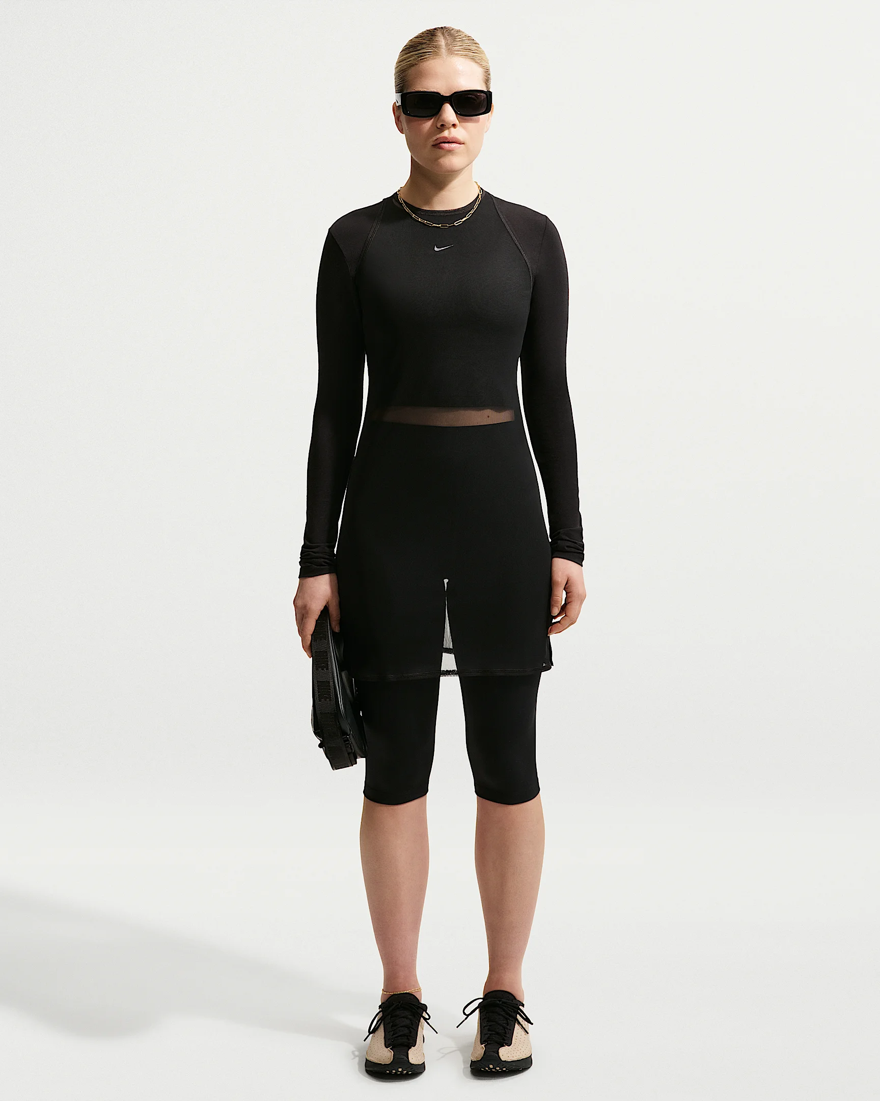 This racerback dress is made with lightweight, sheer fabric. Its tight fit offers a polished look. Product Details - Swoosh logo woven label - Above-knee length - 93% polyester/7% spandex - Machine wash - Imported - Shown: Black/Sail - Style: IR1671-010 SIZE & FIT Model is wearing size S and is 5′7″170cm Tight fit: snug and form-fitting