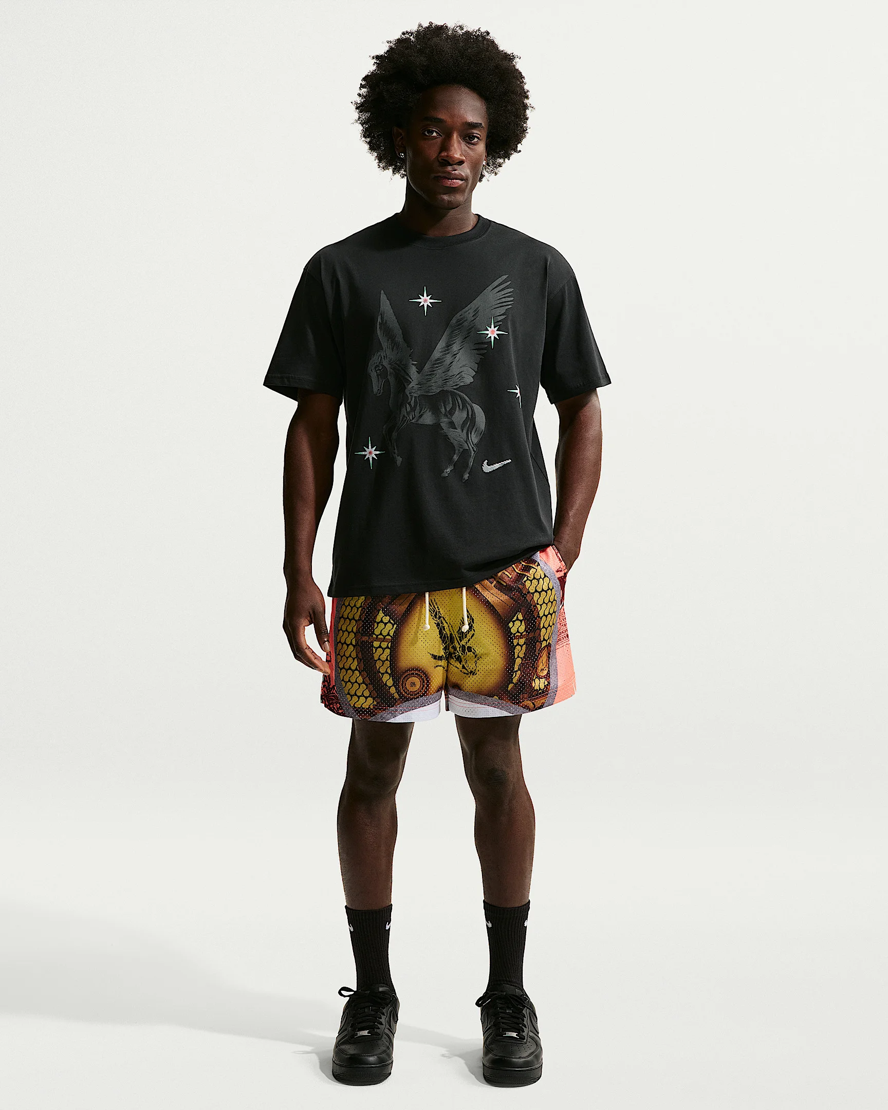 In a world full of unique hoopers, your game is an incomparable unicorn. Extend your wings and let the globe know what time it is in these Dri-FIT practice mesh shorts that help you stay cool. Benefits - Nike Dri-FIT technology moves sweat away from your skin for quicker evaporation, helping you stay dry and comfortable. Product Details - 5" inseam - Double-layered mesh - Hand pockets - "Standard Issue" woven label - Embroidered Swoosh logo - Side vents - Fabric TBD - Machine wash - Imported - Shown: Arctic Orange/Pale Ivory - Style: IO9173-800 SIZE & FIT Model is wearing size M and is 6′0″183cm Standard fit: easy and traditional