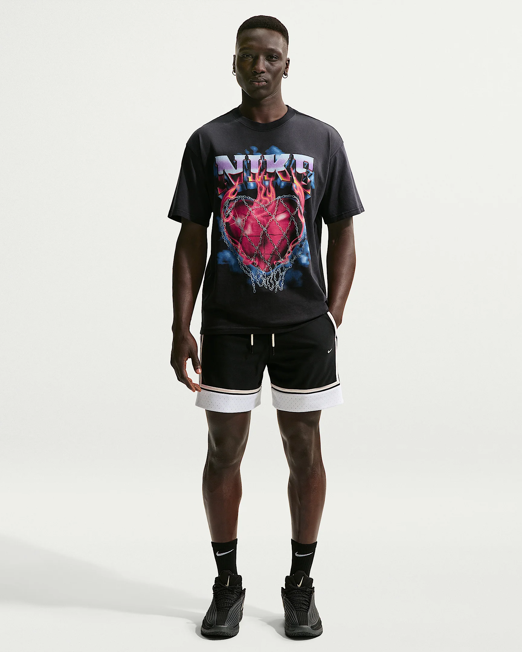Hit your defender with a dribble combo they can’t see coming in these classic 6” game shorts. They come with our Nike Dri-Fit tech too, so you can stay dry and comfortable stringing together moves or sprinting the floor for a bucket. Benefits - Nike Dri-FIT technology moves sweat away from your skin for quicker evaporation, helping you stay dry and comfortable. Product Details - 6" inseam - Lightweight knit with side mesh panels - Zippered back pocket - Hand pockets - "Standard Issue" durasheen woven label - Body: 100% polyester. Mesh: 100% polyester. - Machine wash - Imported - Shown: Black/White/Pale Ivory/Pale Ivory - Style: IF1589-010 SIZE & FIT Model is wearing size M and is 6′0″183cm Standard fit: easy and traditional