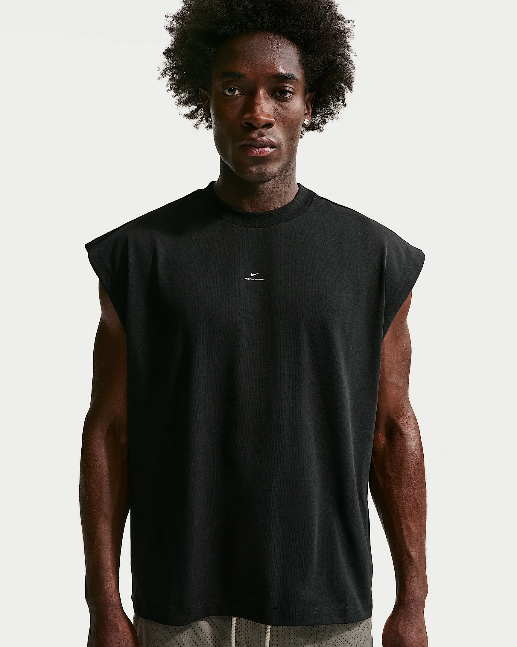 Who’s got next? You do, in this Dri-FIT sleeveless top that helps keep you dry for every drive to the rim, deep jumper and defensive stand. Benefits - Nike Dri-FIT technology moves sweat away from your skin for quicker evaporation, helping you stay dry and comfortable. Product Details - Loose fit - Organic cotton-poly blend fabric - Hanger loop - 63% cotton/37% polyester - Machine wash - Imported - Shown: Black/Pale Ivory - Style: IF2563-010 SIZE & FIT Model is wearing size M and is 6′0″183cm Loose fit: roomy and relaxed