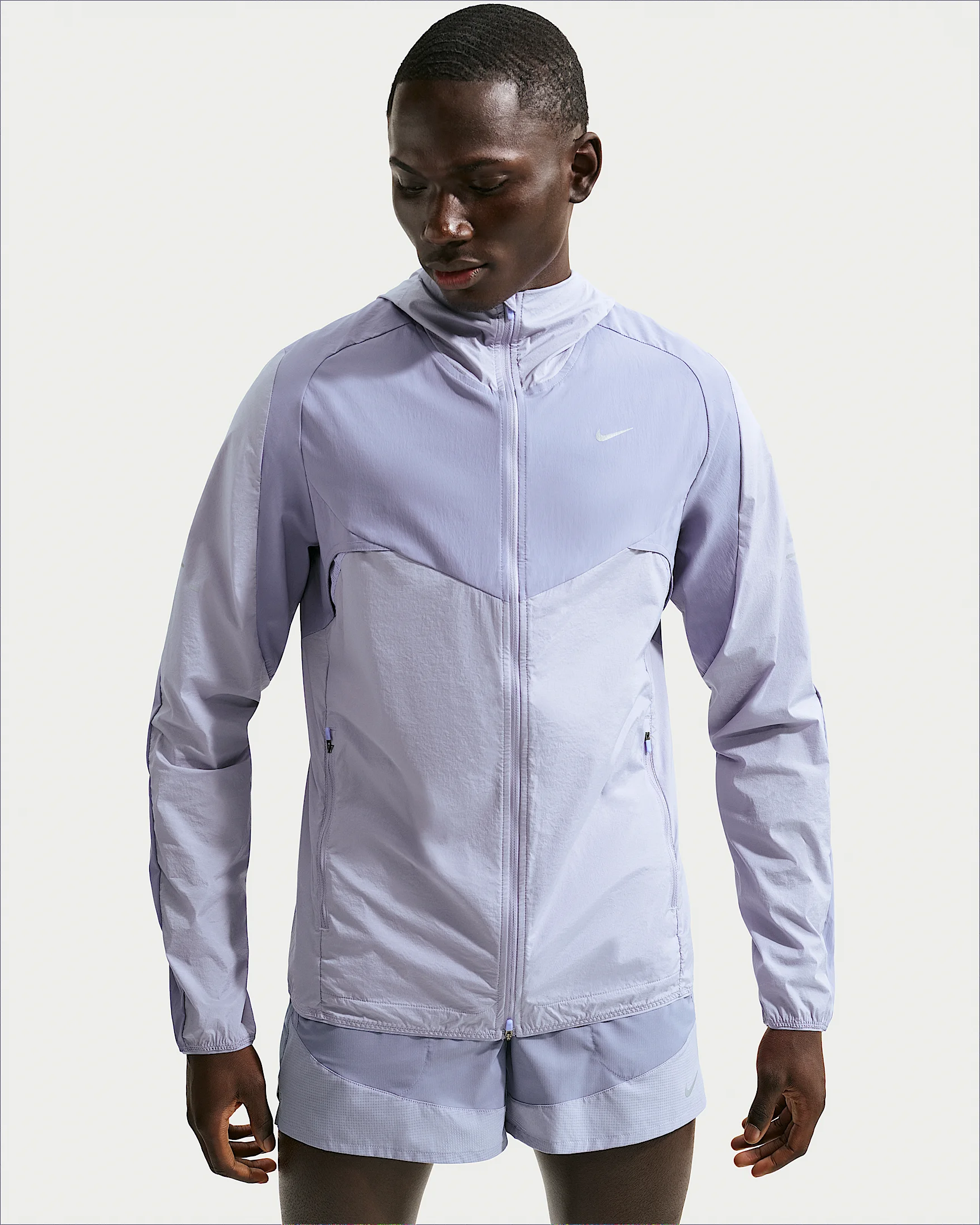 Don't let rain stop your stride, this woven jacket is built with a water-repellent finish to help keep you dry. It’s enhanced with vents and stretch to help give you comfort during the uncomfortable. Product Details - Zippered pockets - Adjustable hood - Reflective details - Body: 91% nylon/9% spandex. Panels: 93% nylon/7% spandex. Mesh: 100% polyester. - Machine wash - Imported - Not intended for use as Personal Protective Equipment (PPE) - Shown: Iron Purple/Indigo Haze/Light Thistle - Style: IF2367-506 SIZE & FIT Model is wearing size M and is 6′1″184cm Standard fit: easy and traditional