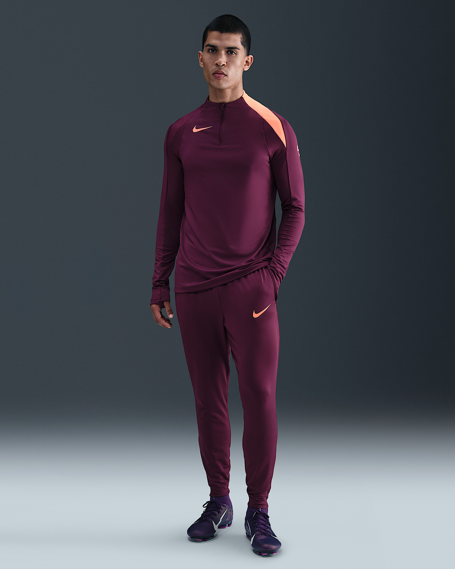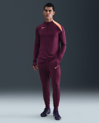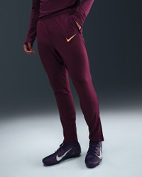 Play your best with Nike Strike, an apparel collection designed for both elite soccer players and rising stars. These slim-fitting pants are light and breathable to help you stay cool on the field. Move effortlessly from sideline to sideline with a gusset panel that gives extra mobility with every stride. When your warm-up is done, zippered cuffs make it easy to slide off over your shoes or cleats. Benefits - Nike Dri-FIT technology moves sweat away from your skin for quicker evaporation, helping you stay dry and comfortable. - Slightly textured stretch-knit fabric is lightweight and breathable. - Zippered side pockets help keep your soccer essentials secure. - Elastic waistband with drawcord provides a fit that feels just right. - Zippered cuffs make the pants easy to take on and off over your shoes. - Gusset design provides extra mobility. Product Details - Ribbed panels - Body: 91% polyester/9% spandex. Panels/Mesh: 100% polyester. - Machine wash - Imported - Shown: Bordeaux/Bordeaux/Orange Pulse/Orange Pulse - Style: FN2405-610 SIZE & FIT Model is wearing size M and is 6′1″185cm Sm fit: sleek and tailored