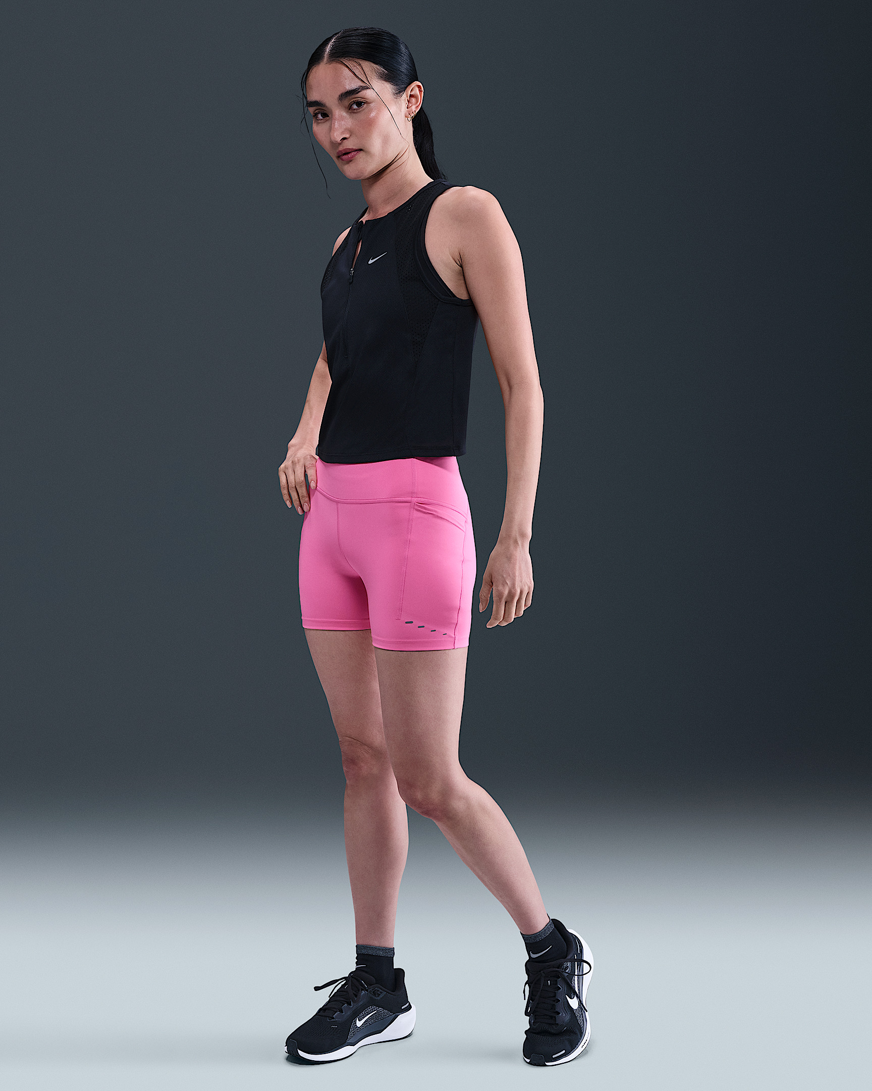 Using insights from runners like you, we prioritized functionality to refresh our Swift essentials. These midweight, sweat-wicking biker shorts are seamless on the inner legs to help reduce chafing. Three pockets store your essentials so you can rack up your miles with everything you need close by. Product Details - Reflective Swoosh logo on center back - Reflective graphics on outer thighs - Not intended for use as Personal Protective Equipment (PPE) - Internal drawcord - Body/Panels lining: 75% polyester/25% spandex - Machine wash - Imported - Shown: Playful Pink - Style: HJ2258-675 SIZE & FIT Model is wearing size S and is 5′7″170cm Tight fit: snug and form-fitting Medium support: feels ke a snug hold to keep everything in place High-Waisted: sits at or above your natural waist for more coverage