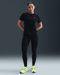 Stay ready for chilly temps day or night. These heat-regulating Swift leggings are made with incredibly soft fabric and have reflective details to add a pop to your path. Three pockets stow your essentials while a drawcord on the waistband helps secure your fit mile after mile. Benefits - Nike Therma-FIT ADV technology combines heat-regulating fabric with advanced features to help keep you warm in cold-weather conditions. - Elastic waistband with a drawcord gives you a secure, distraction-free fit. - Two drop-in side pockets plus one discreet back zip pocket fit most phones (helping reduce bouncing). Product Details - Reflective detailing on front, back and sides - Not intended for use as Personal Protective Equipment (PPE) - Body: 80% polyester/20% spandex. Gusset Lining: 100% polyester. - Machine wash - Imported - Shown: Black/Dark Smoke Grey - Style: HV2287-010 SIZE & FIT Model is wearing size S and is 5′6″168cm Tight fit: snug and form-fitting Medium support: feels ke a snug hold to keep everything in place 78 length: hits at ankle High-Waisted: sits at or above your natural waist for more coverage