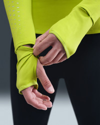 Day or night, stay ready for chilly temps in this heat-regulating Swift top. The incredibly soft, cozy fabric offers warmth while the reflective details add a pop to your path. Benefits - Nike Therma-FIT ADV technology combines heat-regulating fabric with advanced features to help keep you warm in cold-weather conditions. - Thumbholes let you extend your coverage and help hold the sleeves in place. - Watch windows on sleeves let you quickly check the time. - Zip pocket at side fits most phones. Product Details - Reflective details on front, back and sleeves - Reflective Swoosh logo - Not intended for use as Personal Protective Equipment (PPE) - Discreet zipper - 80% polyester/20% spandex - Machine wash - Imported - Shown: Cyber/Black - Style: HV2944-389 SIZE & FIT Model is wearing size S and is 5′9″175cm Sm fit: sleek and tailored