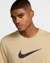 Rock all of our classic brand icons on one cool summer shirt. The soft jersey fabric's Nike Dri-FIT technology helps keep you dry and cool out of the water, while a relaxed fit helps keep you comfortable. Benefits - Nike Dri-FIT technology moves sweat away from your skin for quicker evaporation, helping you stay dry and comfortable. - Internal neck tape is soft against the skin while you conquer the sand, salt and sun. Product Details - UV Protection (UPF 40+) - This product provides UVA and UVB protection from the sun only in the areas covered by the garment. To protect exposed areas, the use of good quality sunscreen is recommended. - Heat Transfer Swoosh logo - 100% polyester - Wash and dry inside out. Do not use fabric softeners or dryer sheets. Machine wash cold separately. Use powder detergent. Do not bleach. Tumble dry low. Cool iron. Do not iron printed area. Do not dry clean. - Imported - Shown: Parachute Beige - Style: NESSF523-241 SIZE & FIT Model is wearing size M and is 6′1″185cm