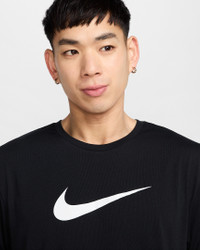 Rock all of our classic brand icons on one cool summer shirt. The soft jersey fabric's Nike Dri-FIT technology helps keep you dry and cool out of the water, while a relaxed fit helps keep you comfortable. Benefits - Nike Dri-FIT technology moves sweat away from your skin for quicker evaporation, helping you stay dry and comfortable. - Internal neck tape is soft against the skin while you conquer the sand, salt and sun. Product Details - UV Protection (UPF 40+) - This product provides UVA and UVB protection from the sun only in the areas covered by the garment. To protect exposed areas, the use of good quality sunscreen is recommended. - Heat Transfer Swoosh logo - 100% polyester - Wash and dry inside out. Do not use fabric softeners or dryer sheets. Machine wash cold separately. Use powder detergent. Do not bleach. Tumble dry low. Cool iron. Do not iron printed area. Do not dry clean. - Imported - Shown: Black - Style: NESSF523-001 SIZE & FIT Model is wearing size M and is 6′2″188cm