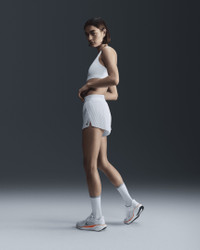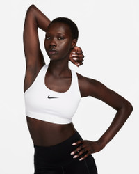 You're on the move. Your padding shouldn't be. This Swoosh bra's sewn-in pads stay in place so you can work hard without worrying about them shifting or folding. Great for training workouts and dance classes, medium support gives you a snug hold that helps keep everything in place. Plus, sweat-wicking, adaptive material quickly recovers its shape so you can stay comfortable throughout your workout. Product Details - Body: 72% polyester/28% spandex. Mesh: 81% polyester/19% spandex. Back lining: 72% polyester/28% spandex. Pad back fabric: 100% polyester. Pad: 100% polyurethane. - Machine wash - Imported - Shown: White/Stone Mauve/Black - Style: DX6821-100 SIZE & FIT Model is wearing size S Model height: 5′10″178cm Model bust: 31″79cm Tight fit: snug and form-fitting Medium support: feels ke a snug hold to keep everything in place Fits large; we recommend ordering a size down