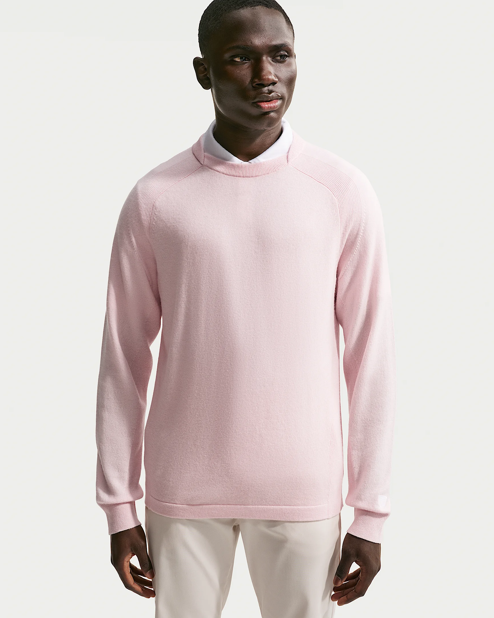 We obsessed over the material and fit of this golf sweater to help you stay warm without sacrificing a stitch of style or function. As smooth as your swing, the merino-cashmere blend is lightweight and naturally breathable. The refined neckline and engineered knit construction provide a sophisticated look that's as comfortable on the first tee as it is on the 19th hole. Product Details - Wool-cashmere blend - Ribbed cuffs - Partially ribbed hem - Embroidered Nike Golf shield logo - 90% wool/10% cashmere - Do not wash - Imported - Shown: Pearl Pink/Sail - Style: IB0288-664 SIZE & FIT Model is wearing size M and is 6′1″184cm Standard fit: easy and traditional