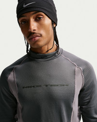 Built with a performance mindset, made for everyday wear. This Nike Tech base layer has soft, stretchy and insulating fabric. Cut with a secure, slim fit, it's equally comfortable layered or worn on its own. Benefits - Tight fit offers a close cut through the body and sleeves. - Flat-stitched seams give a smooth feel and a technical look. Product Details - Reflective Nike Tech chest graphic - Not intended for use as Personal Protective Equipment (PPE) - Embroidered Nike Swoosh logo - Imported - Body: 93% polyester/7% spandex. Mesh panels: 74% nylon/18% lyocell/8% spandex. - Machine wash - Shown: Iron Grey/Pencil Point/Pencil Point/Black - Style: HV1405-068 SIZE & FIT Model is wearing size M and is 6'1"185cm Tight fit: snug and form-fitting