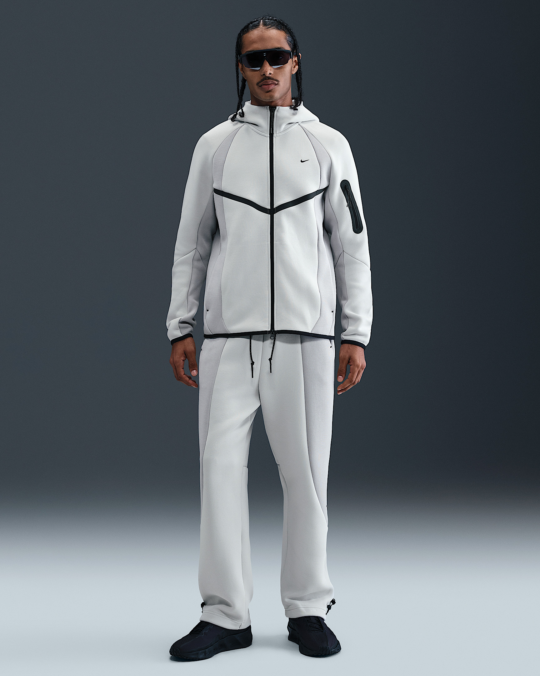 Our Tech Fleece pants offer an injection of premium comfort with our smooth-on-both-sides fleece. They have a relaxed fit and an open hem with bungees to switch up the fit around your shoes. Product Details - Embroidered logo - Elastic waistband with drawcord - Hand pockets - Signature tape-reinforced Tech pocket - Body: 53% cotton/47% polyester. Pocket bag knuckle side: 100% cotton. - Machine wash - Imported - Shown: Light Silver/Light Smoke Grey/Black - Style: IF1323-034 SIZE & FIT Model is wearing size M and is 6′1″185cm Standard fit: easy and traditional