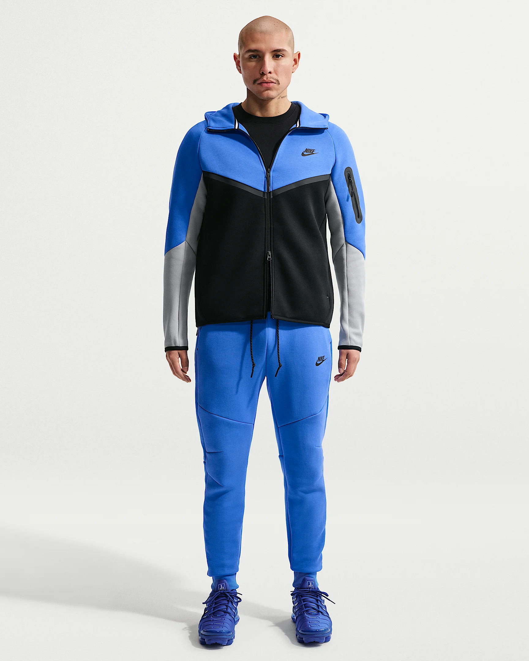 These classic Tech Fleece Joggers offer polished warmth and comfort made with our premium, low-bulk fleece. Tall cuffs let you show off your kicks. Benefits - Our premium, smooth-on-both-sides fleece feels warmer and softer than ever, while keeping the same lightweight build you love. - Roomy through the thigh, this tapered design narrows at the knee to give you a comfortable feel without losing the clean, tailored look - Articulated seems, a taped Tech pocket and the Futura logo let you know it's classic Tech Fleece. - Designed to fit slim through the legs and seat for a clean, polished look. Product Details - Hand pockets - Elastic waistband with external drawcord - Body: 53% cotton/47% polyester. Pocket Bag: 100% cotton. - Machine wash - Imported - Shown: Blue Crystal/Black/Black - Style: HV0959-453 SIZE & FIT Sm fit: sleek and tailored 78 length: hits at ankle