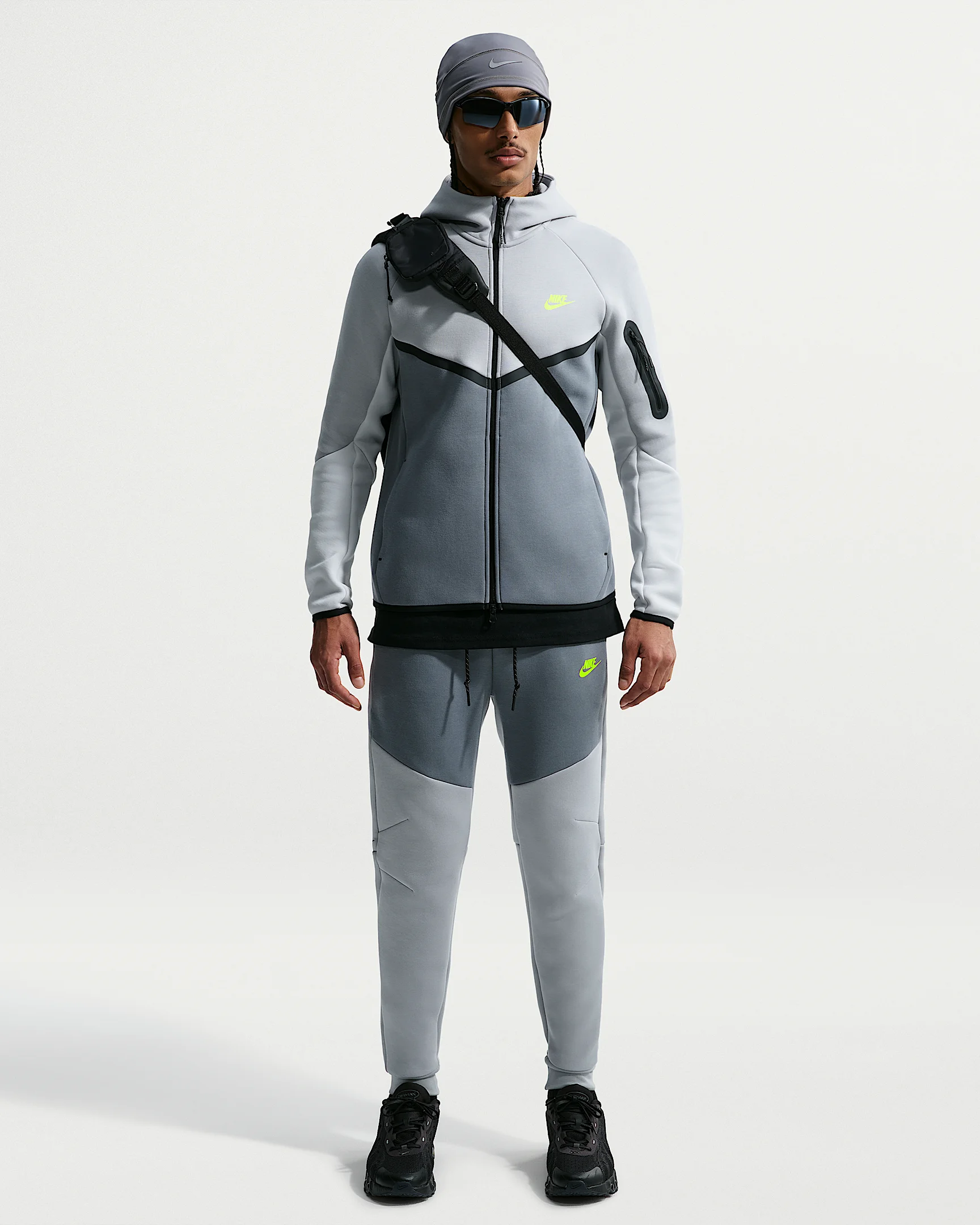 These classic Tech Fleece Joggers offer polished warmth and comfort made with our premium, low-bulk fleece. Tall cuffs let you show off your kicks. Benefits - Our premium, smooth-on-both-sides fleece feels warmer and softer than ever, while keeping the same lightweight build you love. - Roomy through the thigh, this tapered design narrows at the knee to give you a comfortable feel without losing the clean, tailored look - Articulated seems, a taped Tech pocket and the Futura logo let you know it's classic Tech Fleece. - Designed to fit slim through the legs and seat for a clean, polished look. Product Details - Hand pockets - Elastic waistband with external drawcord - Body: 53% cotton/47% polyester. Pocket Bag: 100% cotton. - Machine wash - Imported - Shown: Light Smoke Grey/Cool Grey/Volt - Style: HV0959-077 SIZE & FIT Model is wearing size M and is 6′1″185cm Sm fit: sleek and tailored 78 length: hits at ankle