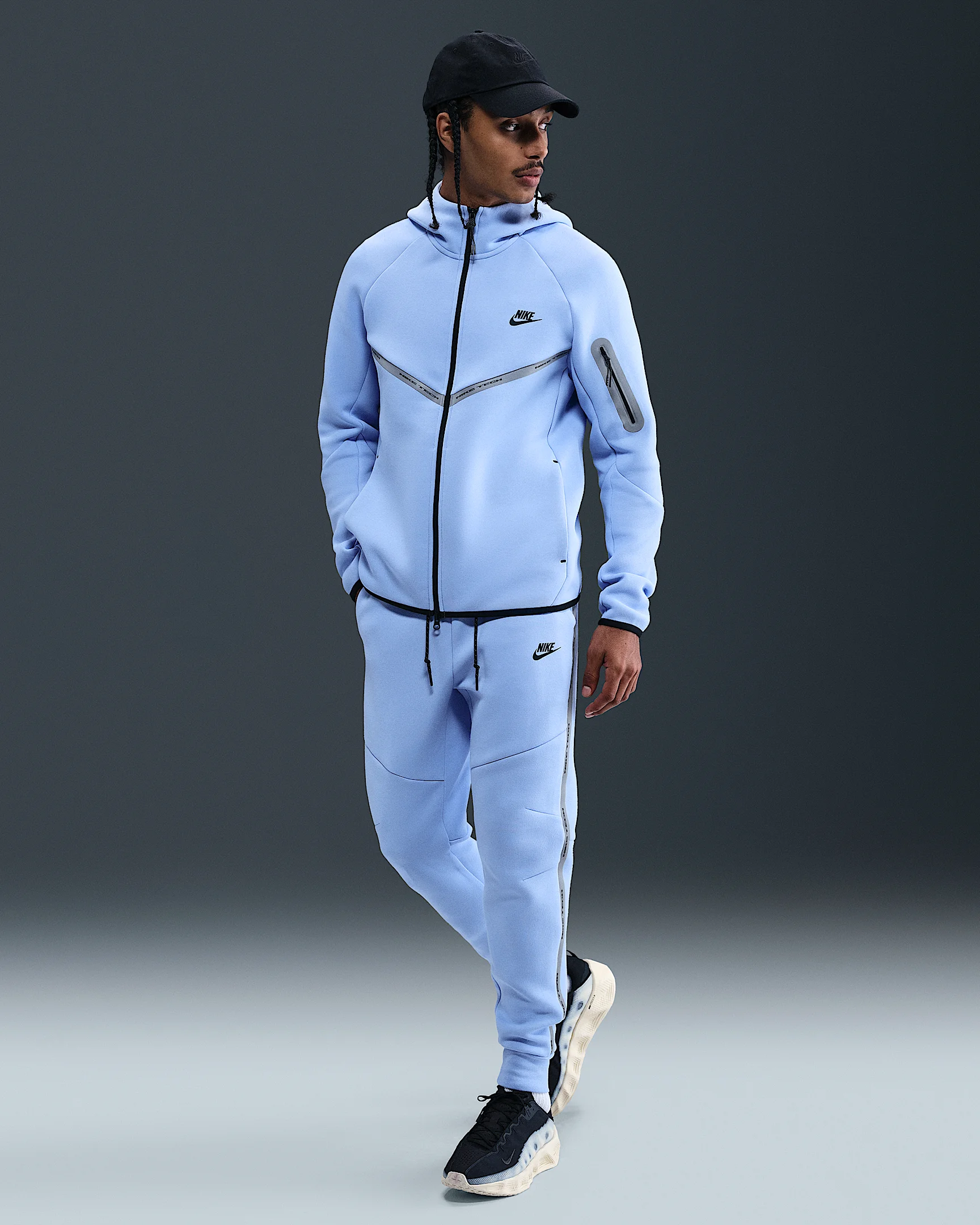 Our Tech Fleece pants offer an injection of premium comfort with our smooth-on-both-sides fleece. These pants have a slim fit and a tall cuff that rests above your shoes. Benefits - Our premium, smooth-on-both-sides fleece brings top-tier softness and warmth without bulk. - Designed to fit slim through the legs and seat for a clean, polished look. Product Details - Embroidered Nike Swoosh logo - Reflective Nike Tech accents - Not intended for use as Personal Protective Equipment (PPE) - Elastic waistband with drawcord - Body: 53% cotton/47% polyester. Pocket bag knuckle side: 100% cotton. - Machine wash - Imported - Shown: Aluminum/Black - Style: IM6540-468 SIZE & FIT Model is wearing size M and is 6′1″185cm Sm fit: sleek and tailored 78 length: hits at ankle