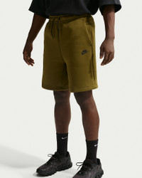 Give your casual looks an injection of premium comfort with our smooth-on-both-sides fleece shorts. A secure Tech pocket lets you know it’s authentic Nike Tech. Benefits - Standard fit feels relaxed through the seat and thighs. - Elastic waistband with bungee and cord lock lets you draw up the perfect fit. - Side drop-in pockets and a signature tape-reinforced Tech pocket on the back thigh offer plenty of storage for your essentials. Product Details - Embroidered Nike Futura logo - Body: 53% cotton/47% polyester; Pocket bags: 100% cotton. - Machine wash - Imported - Shown: Olive Flak/Black - Style: IM0693-368 SIZE & FIT Model is wearing size M and is 6'1"185cm Standard fit: easy and traditional