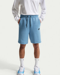Give your casual looks an injection of premium comfort with our smooth-on-both-sides fleece shorts. A secure Tech pocket lets you know it’s authentic Nike Tech. Benefits - Standard fit feels relaxed through the seat and thighs. - Elastic waistband with bungee and cord lock lets you draw up the perfect fit. - Side drop-in pockets and a signature tape-reinforced Tech pocket on the back thigh offer plenty of storage for your essentials. Product Details - Embroidered Nike Futura logo - Body: 53% cotton/47% polyester; Pocket bags: 100% cotton. - Machine wash - Imported - Shown: Work Blue/Black - Style: IM0693-486 SIZE & FIT Model is wearing size M and is 5'11"180cm Standard fit: easy and traditional