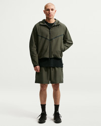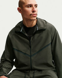 Nike Tech infused with a dose of Nike Heritage. This jacket is crafted with midweight, tightly knit fabric that's smooth, stretchy and sweat wicking. Chevron design lines are inspired by the historic Nike Windrunner track jacket while articulation at the elbows grounds it in a distinct Nike Tech aesthetic. Its roomy fit makes it a great layer while a two-way zipper let's you adjust your coverage. Product Details - Embroidered logo - Zippered hand pockets - Locker loop - Body: 44% polyester/43% cotton/13% spandex. Pocket bags: 100% cotton. Hood lining: 44% polyester/43% cotton/13% spandex. - Machine wash - Imported - Shown: Cargo Khaki/Black - Style: IF1345-325 SIZE & FIT Model is wearing size M and is 5′11″180cm Loose fit: roomy and relaxed