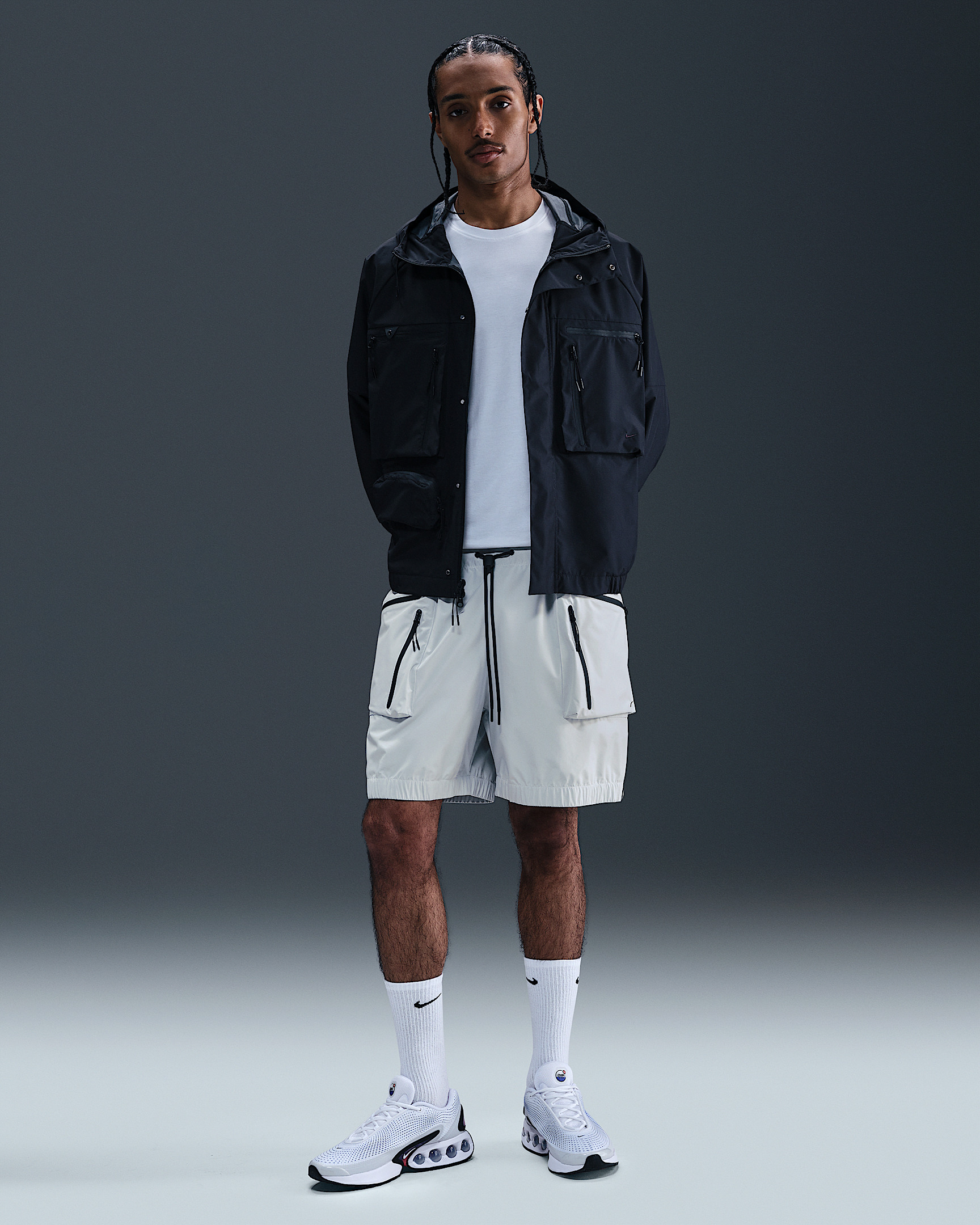 These ultra-smooth, above-the-knee shorts are crafted with waterproof materials that won't weigh you down. Benefits - The spacious cargo pockets have separated internal compartments with zippers to let you securely store your essentials. - An elastic waistband and adjustable bungee let you clean up your fit and adjustments. Product Details - Embroidered Nike Swoosh logo - 100% polyester - Machine wash - Imported - Shown: Summit White/Black - Style: HJ2946-121 SIZE & FIT Model is wearing size M and is 6′1″185cm Loose fit: roomy and relaxed
