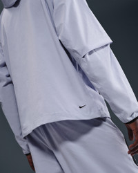 Crafted with stretchy, breathable material, the Nike Tech Woven Jacket offers you ease of movement and adjustable details. Bungee cords with cord locks create a custom fit at the hem and hood. Benefits - Lightweight fabric moves sweat away from your skin for quick evaporation, helping you stay dry and comfortable. - Loose fit through the body allows a full range of movement. - Articulated elbows are made with movement in mind, and add a distinct Nike Tech aesthetic. - Hood and stand collar offer coverage from the elements. - Two-way zipper lets you adjust your fit. - Bungee cords with cord locks create a custom fit at the hem and hood. Product Details - Nike Futura logo - Body: 94% nylon/6% spandex. Pockets: 100% polyester. - Machine wash - Imported - Shown: Ghost/Ghost/Black - Style: HM7151-057 SIZE & FIT Model is wearing size M and is 6′3″189cm Oversized fit: exaggerated and spacious Fits large; we recommend ordering a size down