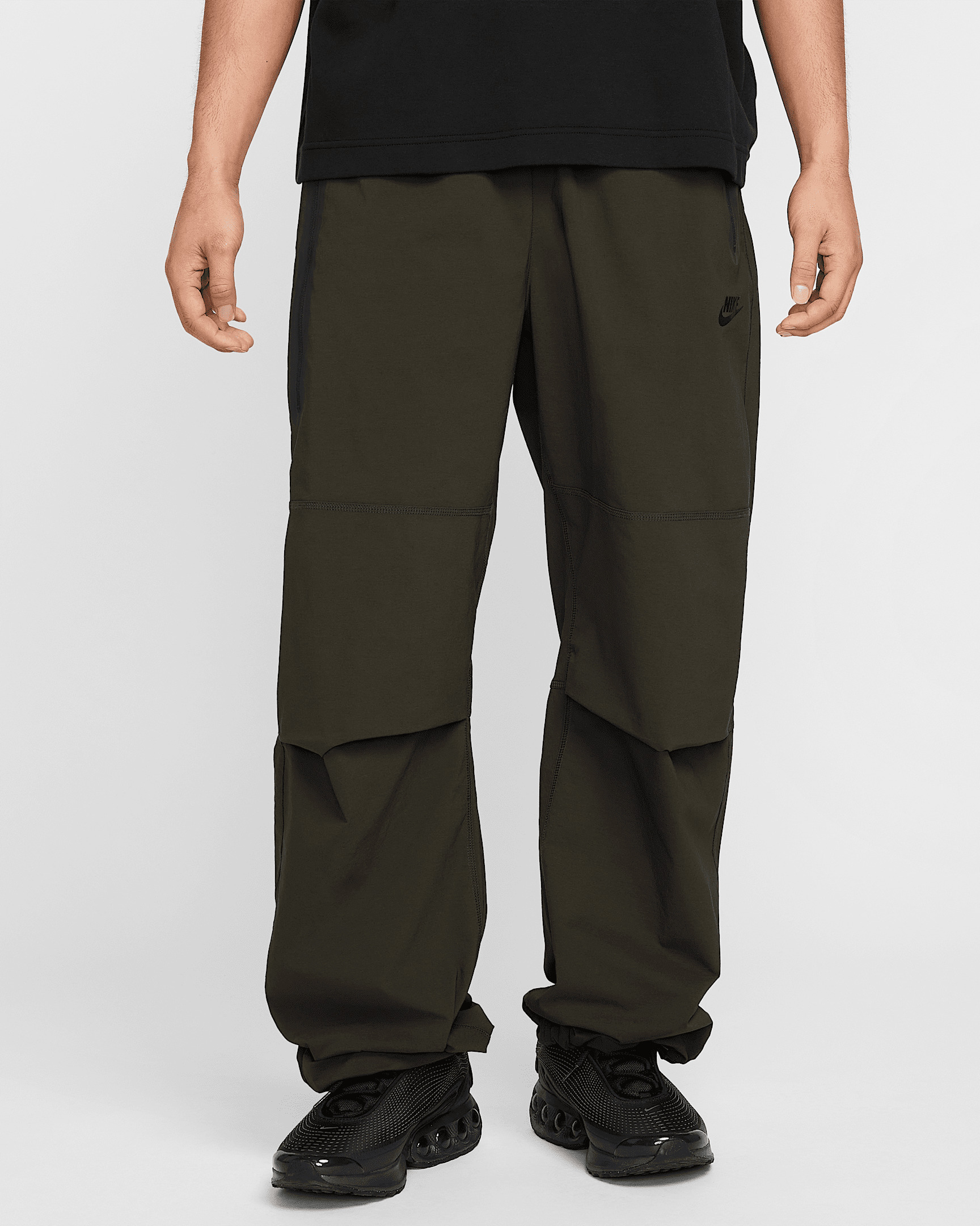 Crafted with stretchy woven material, these Nike Tech pants offer you ease of movement and adjustability. The wide-leg cut is paired with bungee locks at the ankles that let you switch up the fit. Benefits - Lightweight fabric moves sweat away from your skin for quick evaporation, helping you stay dry and comfortable. - Oversized fit offers plenty of space through the thighs and legs. - Articulated knees are made with movement in mind, and add a distinct Nike Tech aesthetic. - Stretchy elastic waistband with bungee drawcord provides a custom fit. Product Details - Nike Futura logo - Extralong taped Tech pocket - Hand pocket on the left - Body: 94% nylon/6% spandex. Pocket Bags: 100% polyester. - Machine wash - Imported - Shown: Sequoia/Sequoia/Black - Style: HM7158-356 SIZE & FIT Model is wearing size M and is 6′1″185cm Oversized fit: exaggerated and spacious 78 length: hits at ankle