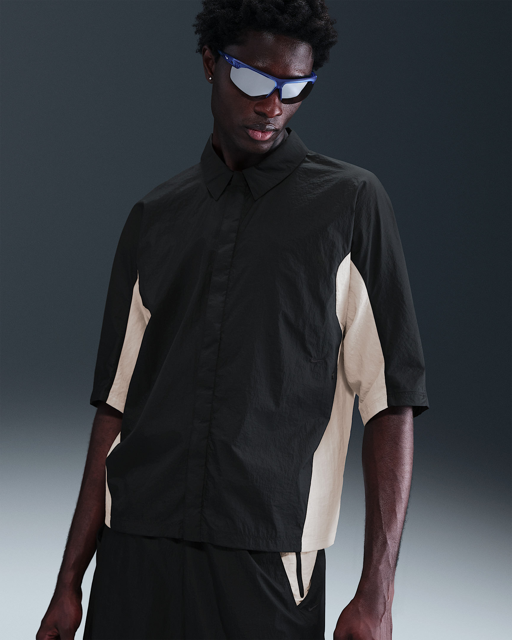 We crafted this lightweight shirt from crisp ripstop fabric with a crinkled finish. The oversized fit is paired with a mesh panel on the back for a breathability. Benefits - A snap-front placket has a hidden chest pocket. - The oversized fit is designed to feel extra roomy through the body. Product Details - Embroidered Nike Swoosh logo - Body: 100% nylon. Mesh: 100% polyester. - Machine wash - Imported - Shown: Black/Light Bone/Black - Style: IF8328-010 SIZE & FIT Model is wearing size M and is 6′1″185cm Oversized fit: exaggerated and spacious