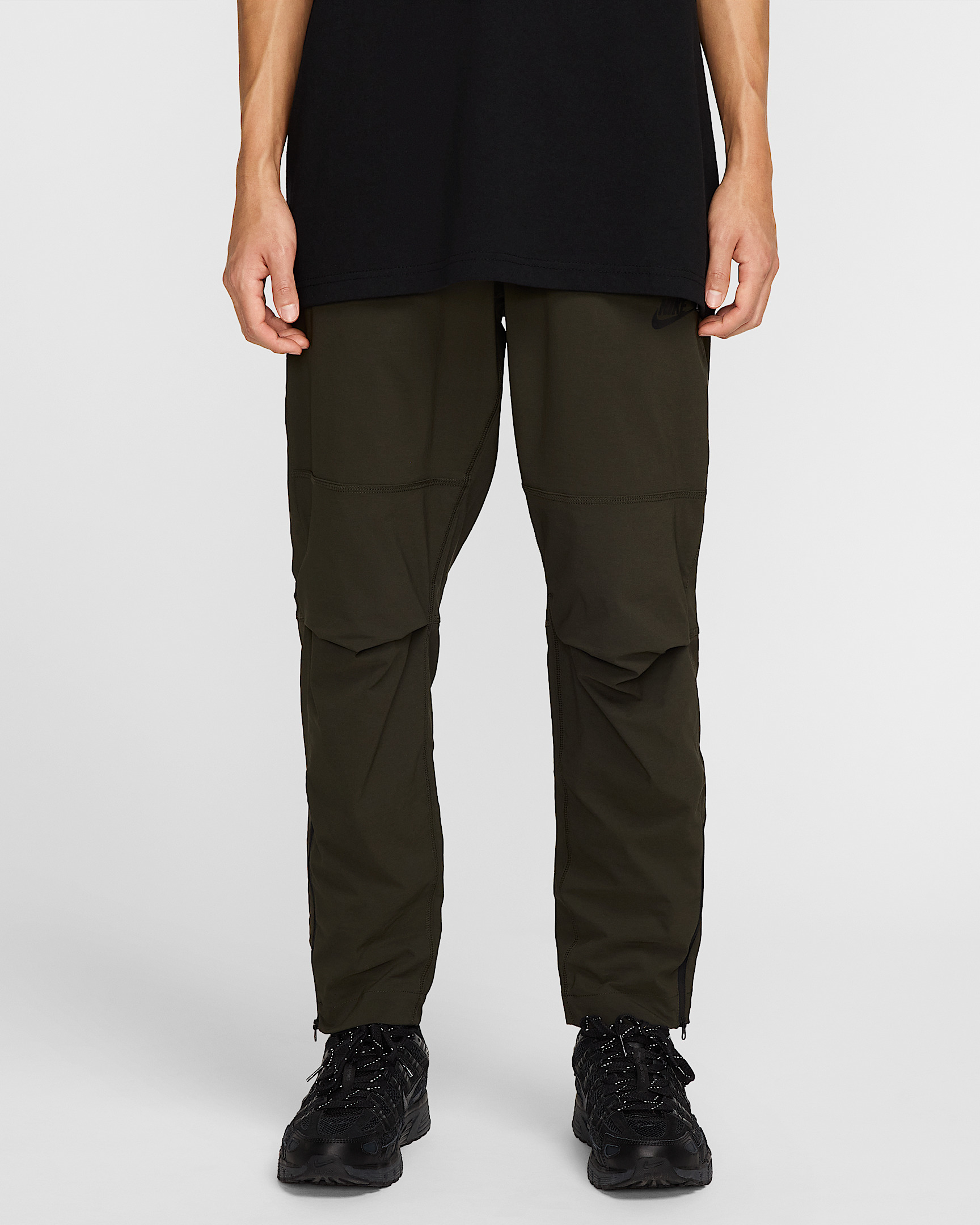 Made with stretchy, sweat-wicking fabric, these tapered pants offer a clean Nike Tech look. A roomier fit through the seat and thighs tapers to the zippered ankle. Classic Tech details dial in the look. More Benefits - Taped and zippered hand pockets and a back welt pocket keep small essentials handy. Product Details - Nike Futura logo - Zippered hem - Elastic waistband with drawcord - 94% nylon/6% spandex. Pocket Bags: 100% polyester - Machine wash - Imported - Shown: Sequoia/Black - Style: HM8241-355 SIZE & FIT Model is wearing size M and is 6′0″183cm Standard fit: easy and traditional
