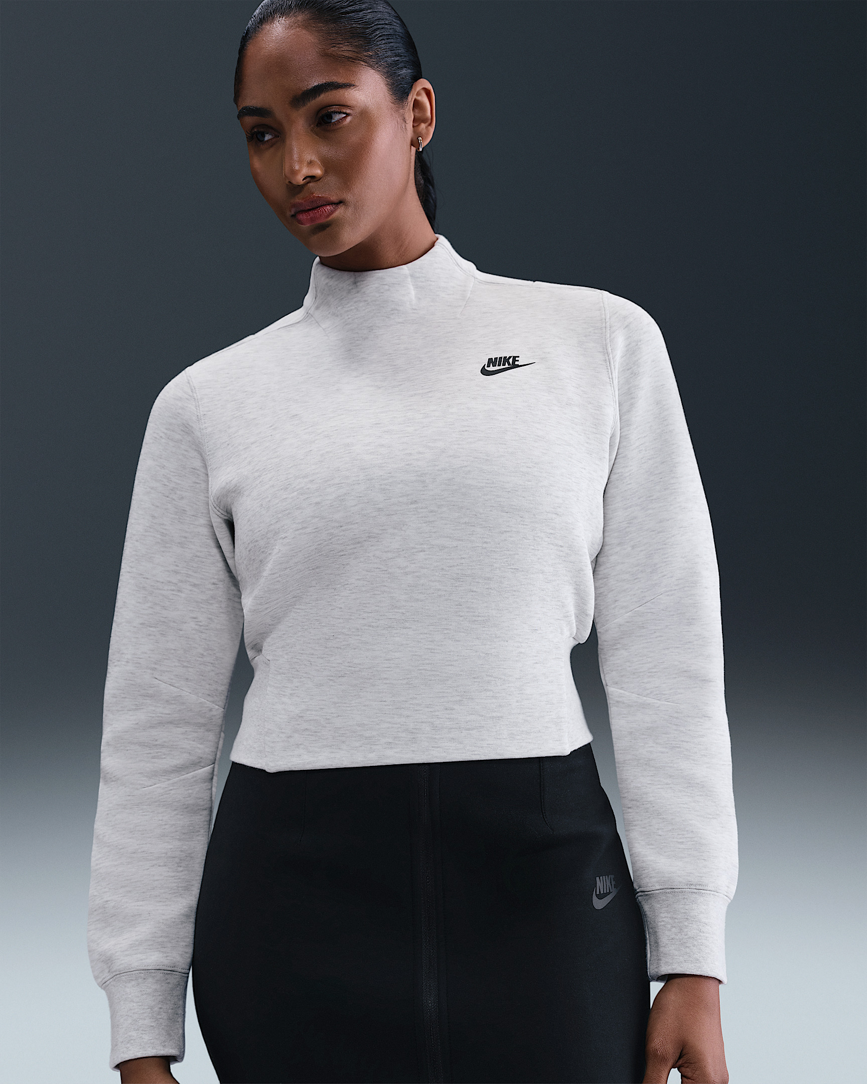 This top features our premium, smooth-on-both-sides fleece that brings top-tier softness and warmth without adding bulk. Its standard fit feels relaxed through the body. A concealed zipper at the back offers easy on and off. Benefits - Ribbing on the back hem adds a polished finish. - Articulation at the elbows offers ease of movement while serving a distinct Nike Tech aesthetic. Product Details - Ribbed cuffs - Body: 53% cotton. 47% polyester. Rib: 97% cotton/3% spandex. - Machine wash - Imported - Shown: Light Grey/Heather/Black - Style: HV2796-013 SIZE & FIT Standard fit: easy and traditional
