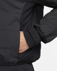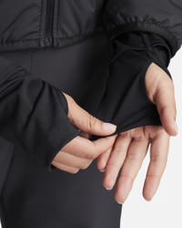 Don't feel stuck inside when the chill rolls in. With heat-regulating technology, this loose-fitting jacket helps keep you warm on your run and throughout your day. Slip your thumbs through the holes in the extended sleeves for even more coverage, so you're set to keep going through cold-weather conditions. Benefits - Nike Therma-FIT technology helps manage your body’s natural heat to help keep you warm in cold-weather conditions. - Thumbholes let you extend your coverage and help hold the sleeves in place while you move. - Secure your essentials in zippered side pockets. - Drop-tail design provides more coverage and warmth on back. - Loose fit makes layering easy. Product Details - 100% polyester - Machine wash - Imported - Reflective elements - Not intended for use as Personal Protective Equipment (PPE) - Shown: Black - Style: FB7511-010 SIZE & FIT Loose fit: roomy and relaxed