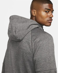 Bring the heat to your cold weather workout with the Therma Top. Supersoft fleece keeps the comfort levels high while you take your exercise routine to the next level. A relaxed feel means you can stretch and bench without anything holding you back. Benefits - Nike Therma-FIT technology helps manage your body’s natural heat to help keep you warm in cold-weather conditions. - Fleece feels supersoft and has a lightly fuzzy feel inside so you can stay warm and comfy. - Zippered pocket on the left arm lets you stash a key or card. Product Details - Standard fit for a relaxed, easy feel - Full-length front zipper - Woven zipper pulls - Front pockets - Printed back neck tape - 3-panel hood - Tipped drawcord with metal grommets - Embroidered Swoosh graphic - 100% polyester - Machine wash - Imported - Shown: Charcoal Heather/Dark Smoke Grey/Black - Style: DQ4830-071 SIZE & FIT Model is wearing size M and is 6'2"188cm Big & Tall model is wearing size 2XL and is 6'6"197cm Standard fit: easy and traditional