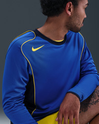 This sweat-wicking, jersey-inspired top pays homage to Nike’s Total 90 heritage. Breathable fabric helps you stay cool and comfortable, while the design brings a mid-2000s edge to your on-and-off-the-field style. Product Details - 100% polyester - Machine wash - Imported - Shown: Game Royal/Midnight Navy/Lightning/Lightning - Style: HV3512-480 SIZE & FIT Model is wearing size M and is 6′2″188cm Standard fit: easy and traditional